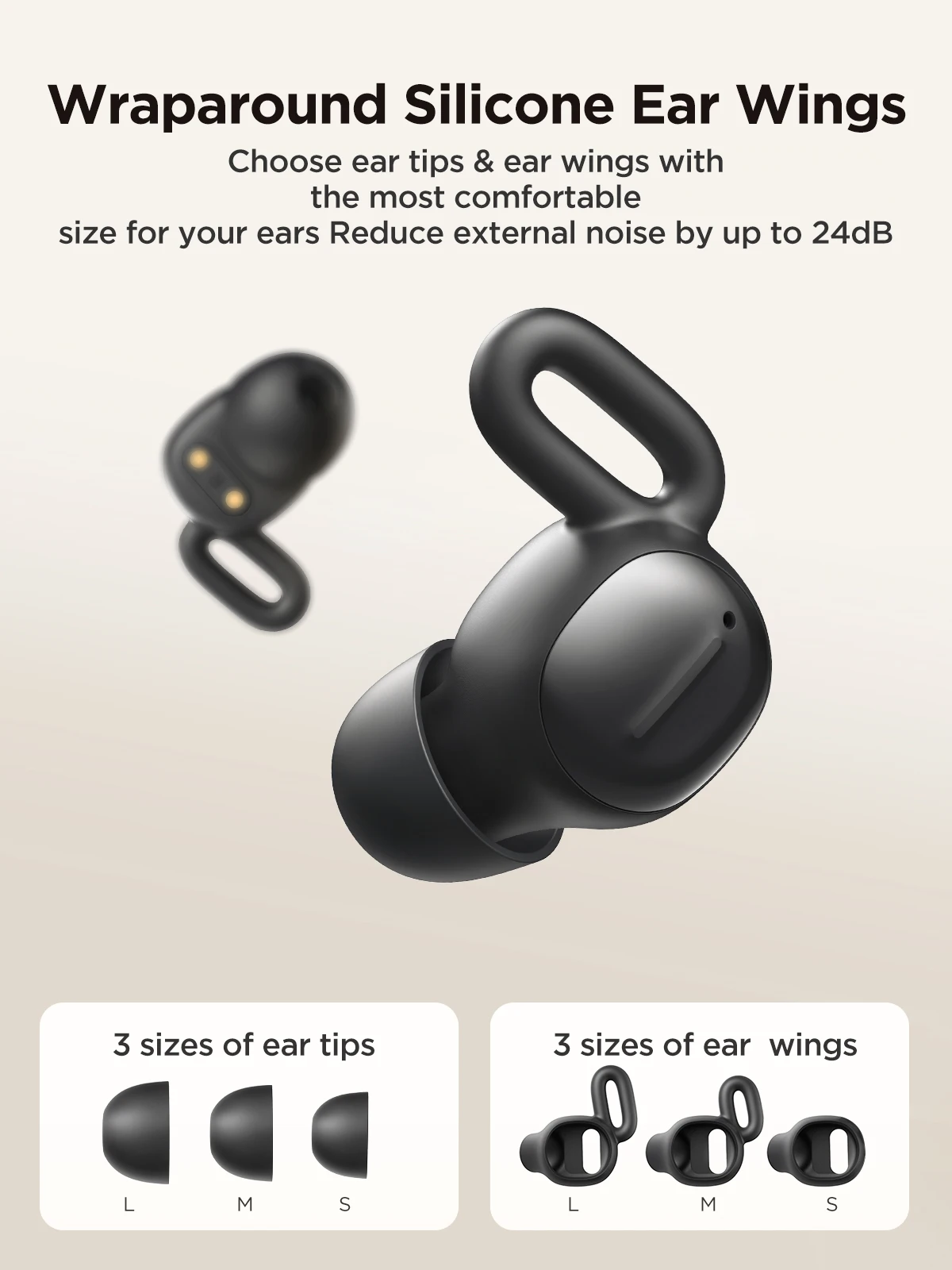 2. Alas de oreja de silicona envolventes, suaves y amigables con la piel, cómodas de llevar, ajuste seguro.