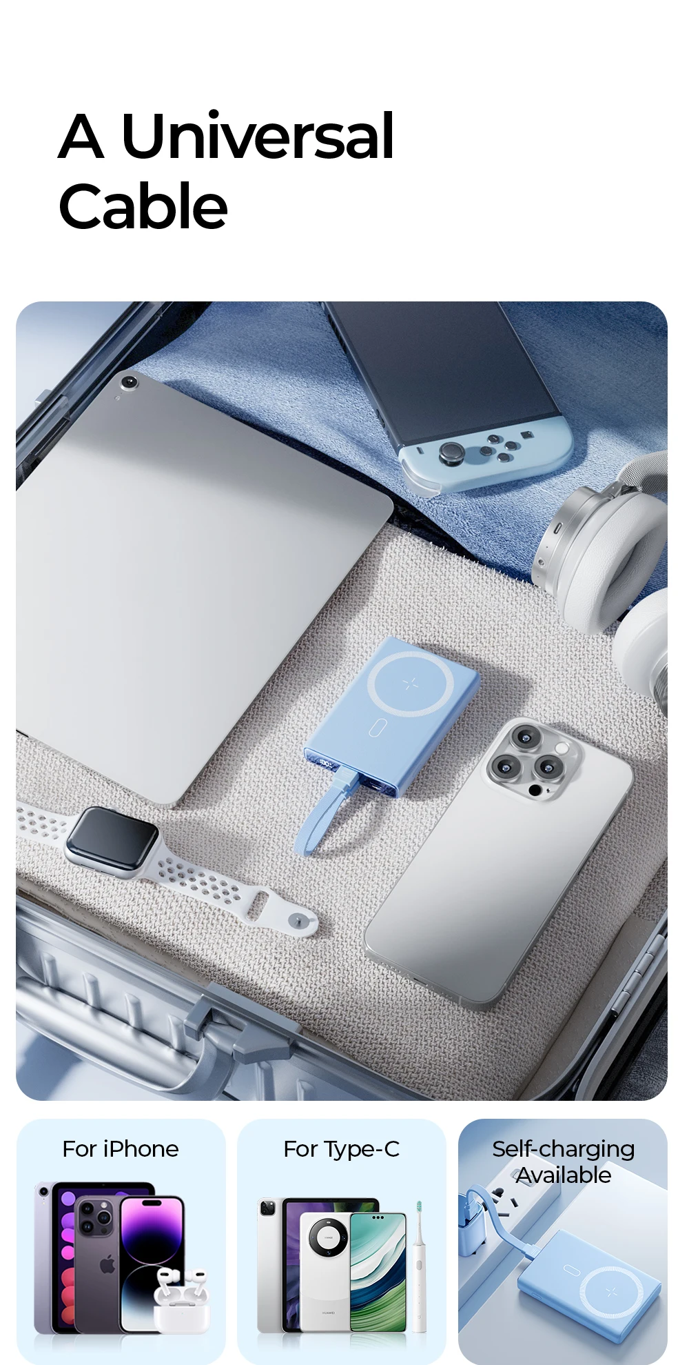 2. Viene con línea desmontable, una línea de tres cargas, puede cargar dispositivos Apple/Android/autocargarse;