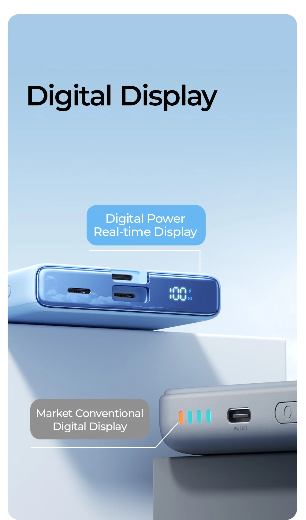 4. Pantalla digital inteligente digital, la energía restante y el estado de carga inalámbrica son claramente visibles;