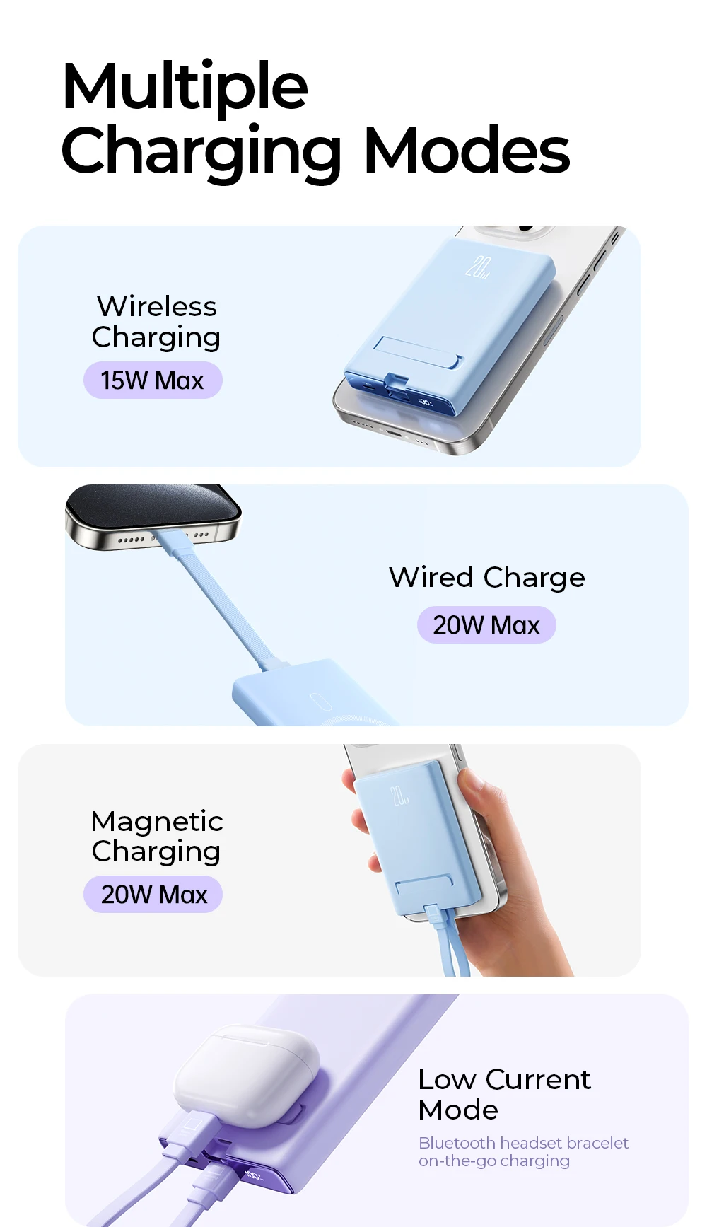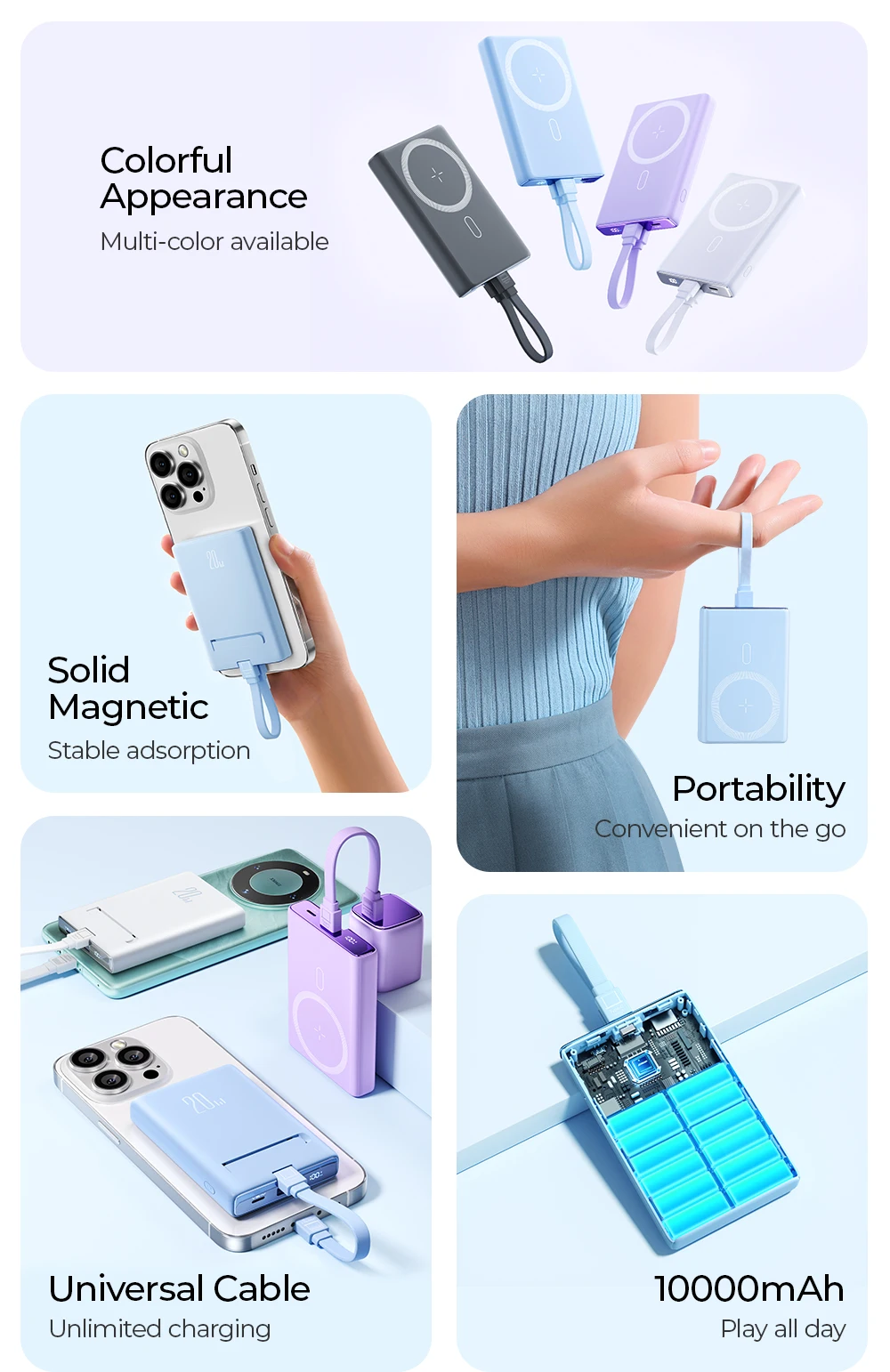 Banco de energía magnético Joyroom con soporte de carga PD 20W 10000mAh PowerBank para iPhone Cable QC3.0 cargador para Samsung Xiaomi