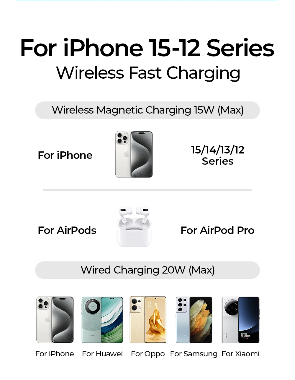 5.PD20W carga rápida bidireccional, carga inalámbrica de 15W;