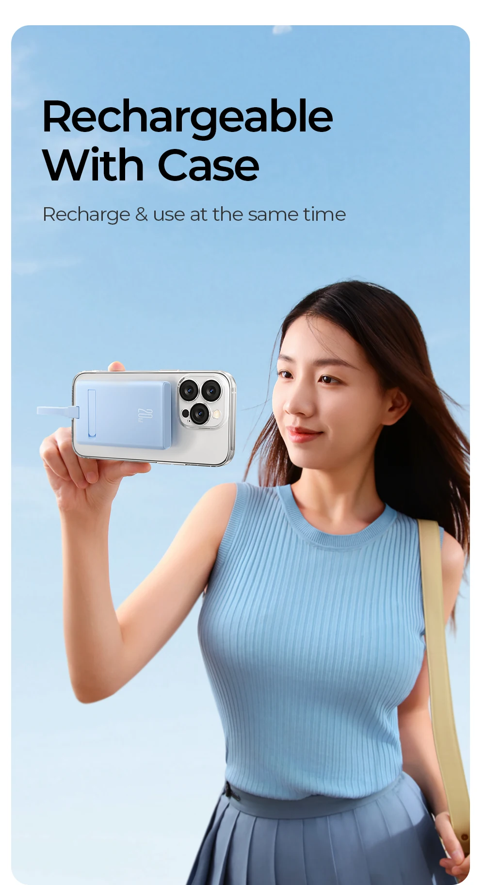 Gran CAPACIDAD DE 7,10000 mAh, tamaño mini, no bloquea la cámara;