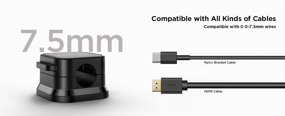 1.【7.5 mm Perfect Cable Slot Diameter】Diameter of 0.3 inches (7.5mm) can hold most cables, such as phone charging cables, USB cords, HDMI thick cables, computer power cords, etc. Besides that, the slot diameter of 7.5mm can perfectly hold a charging head as small as the iPhone original silicone charging cable without falling off, and the held cable can be pulled out smoothly for use.