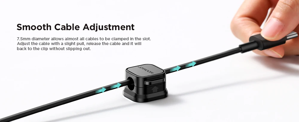 2.【Magnetic Clamp Design】The unique magnetic opening and closing cable clip design allows you to place and remove cables with only one hand. Unlike other cord holders on the market, Joyroom cable organizer uses a sophisticated 60° rotating shaft and magnetic locking cord design, helping you easily snatch a cord off or easily add a cord easily.