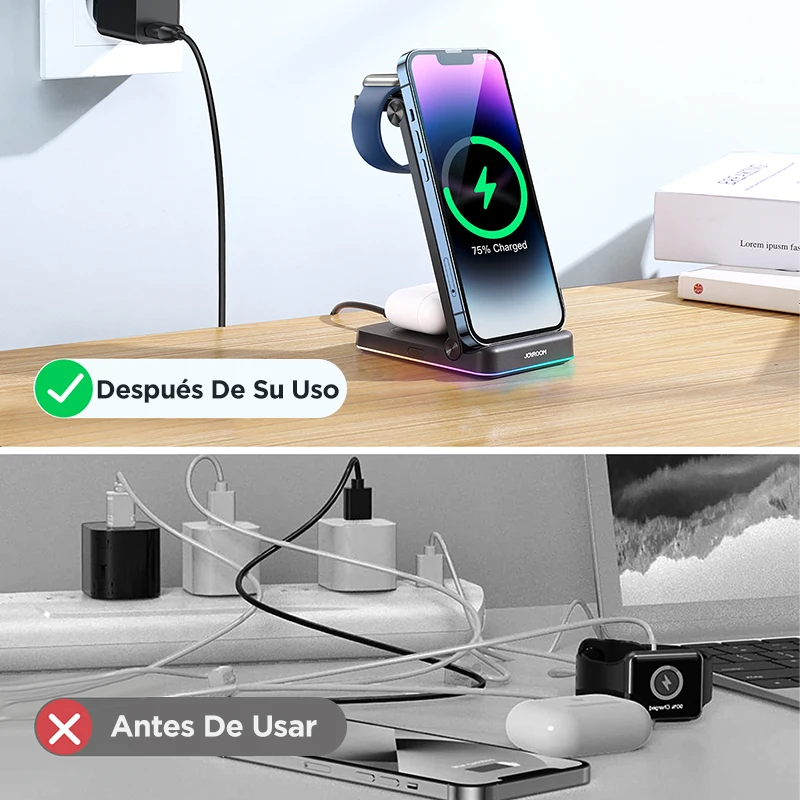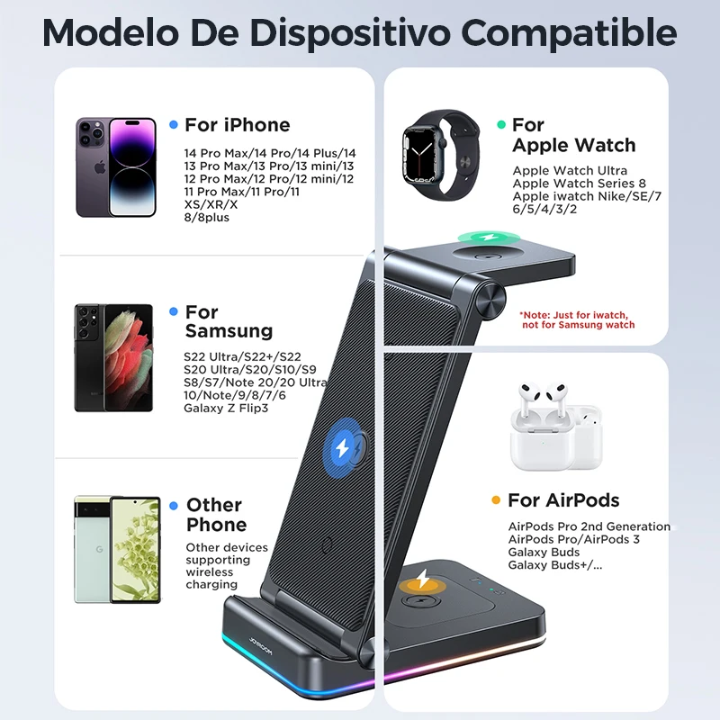 Joyroom cargador inalámbrico plegable 3 en 1 múltiple estación de carga rápida de 15W para Apple Watch para teléfono para Airpods