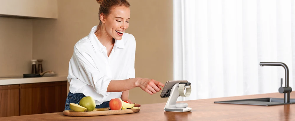 4.【Wireless Charger for iPhone/Apple Watch/AirPods】Wireless magnetic charger station compatible with magnetic case, for iPhone 16/ 16 Plus/ 16 Pro/ 16 Pro Max/iPhone 15/ 15 Plus/ 15 Pro/ 15 Pro Max/ 14/ 14 Plus/ 14 Pro/ 14 Pro Max/ 13/ 13 mini/ 13 Pro/ 13 Pro Max/ 12/ 12 mini/ 12 Pro/ 12 Pro Max, for Apple Watch 10/9/8/7/6/5/4/3/2/Ultra 2/Ultra 1/SE, for AirPods 4/3/2 Pro 2/Pro. (Note: Please use magnetic phone case or without case for wireless charging)