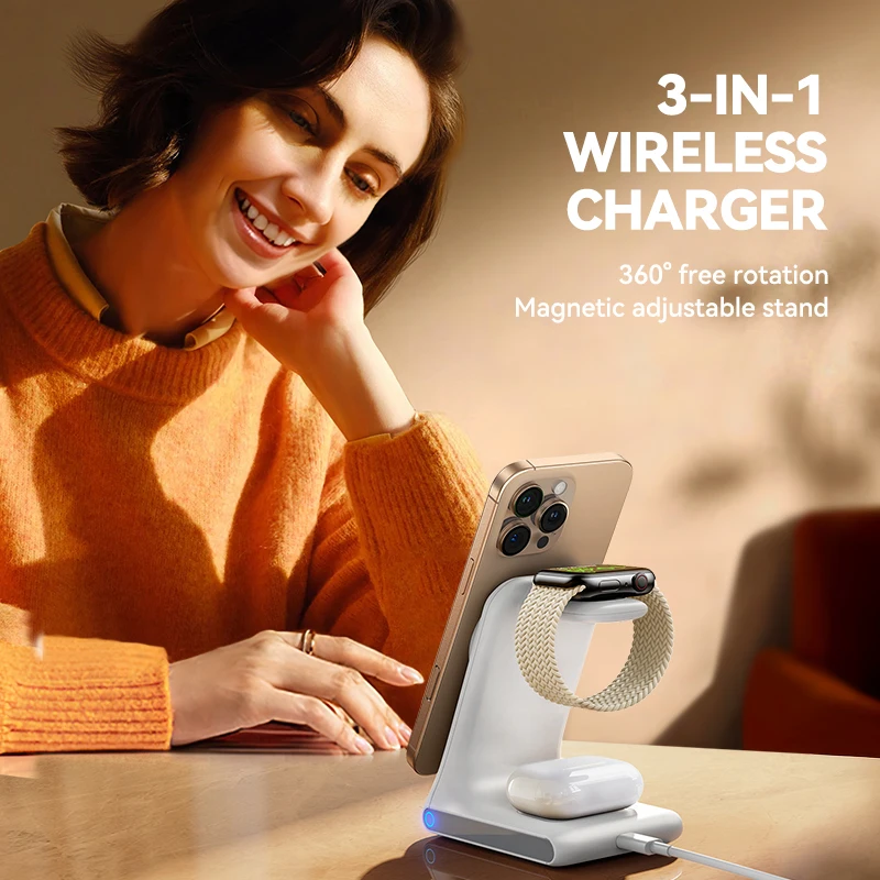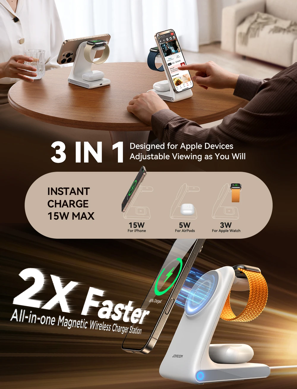 Comprar Joyroom Estación de carga inalámbrica magnética 3 en 1, soporte para cargador de teléfono inalámbrico para iPhone 16 15 14Pro Max para iWatch para AirPods