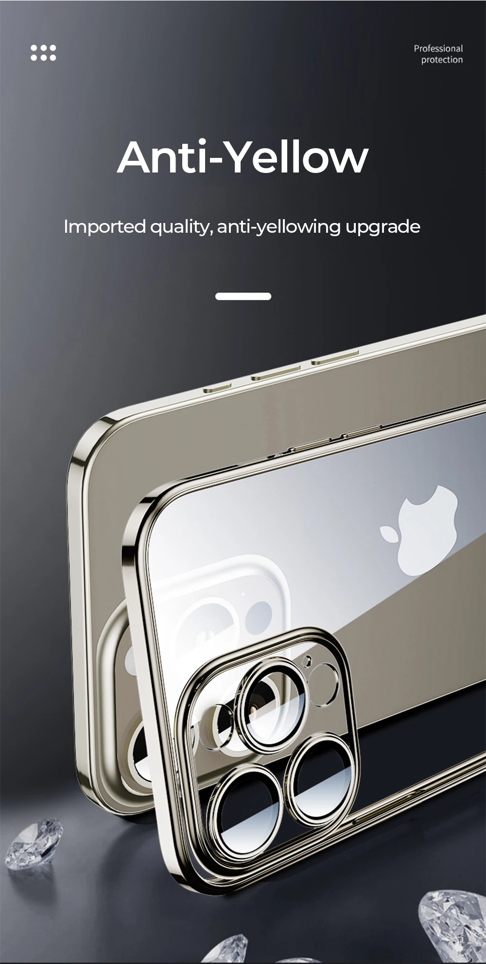 【Resistente a los arañazos y antiamarillo】 -- Marco de galvanoplastia al vacío + material de diamante helado. Compatible con la funda delgada de la serie iPhone 15 14 y no se volverá amarilla en varios meses.Incluso si se vuelve amarillo, límpielo y se limpiará inmediatamente.