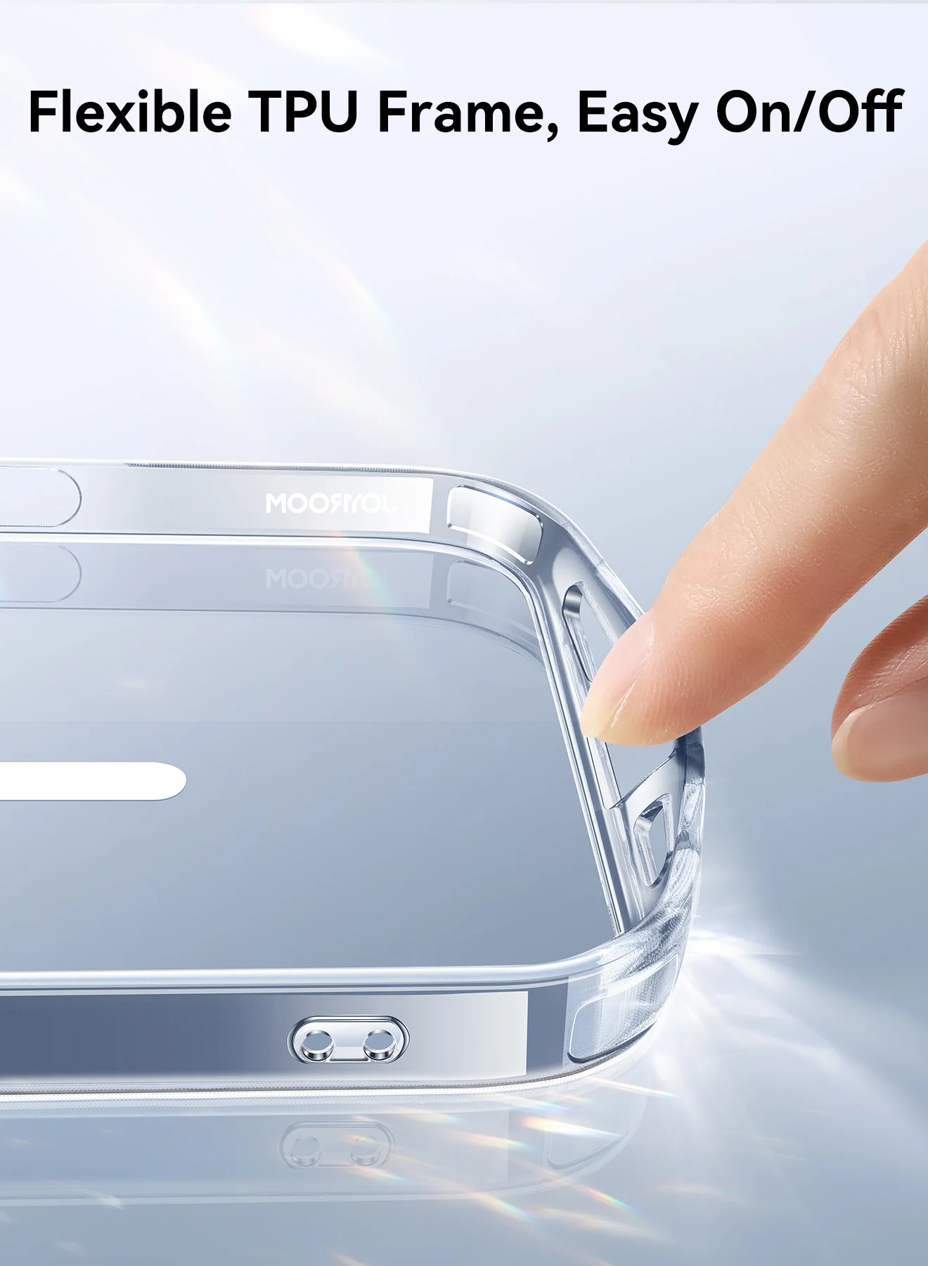 Marco de TPU flexible, fácil de poner y quitar.