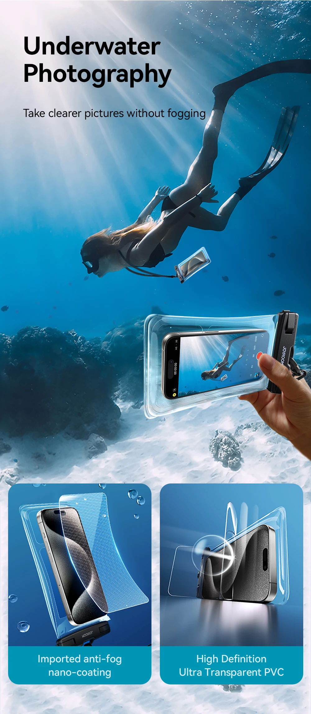 🌊Compatibilidad universal: La funda impermeable para teléfono móvil JOYROOM es adecuada para teléfonos móviles de hasta 7 pulgadas, como iPhone 15 14 13 12 Pro MAX XS, Samsung Galaxy S24 S23 S22.