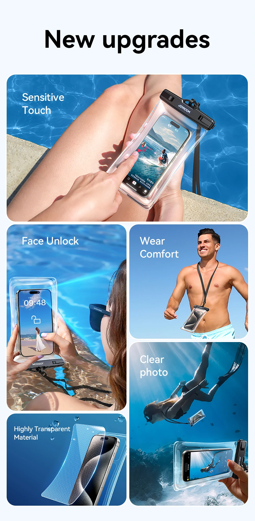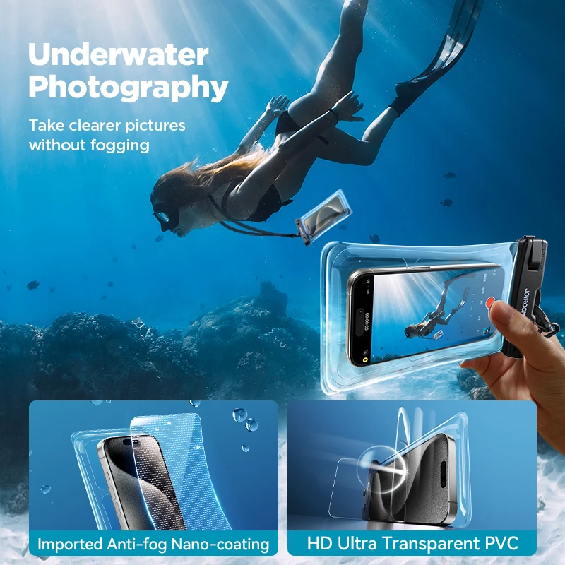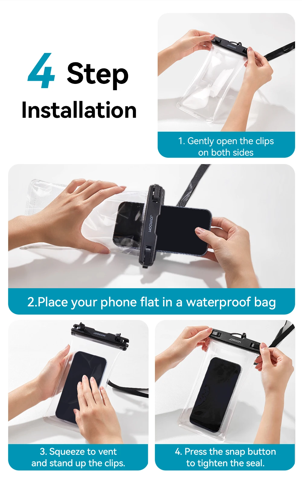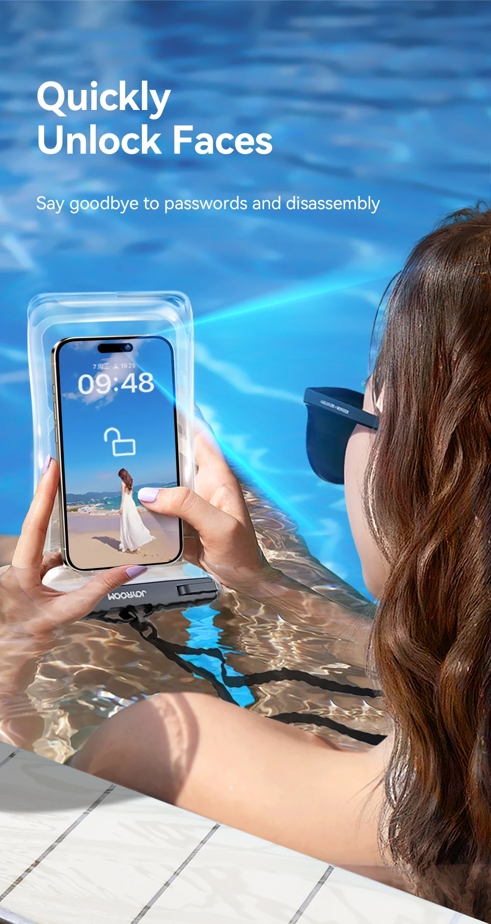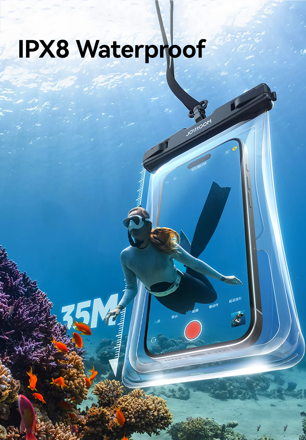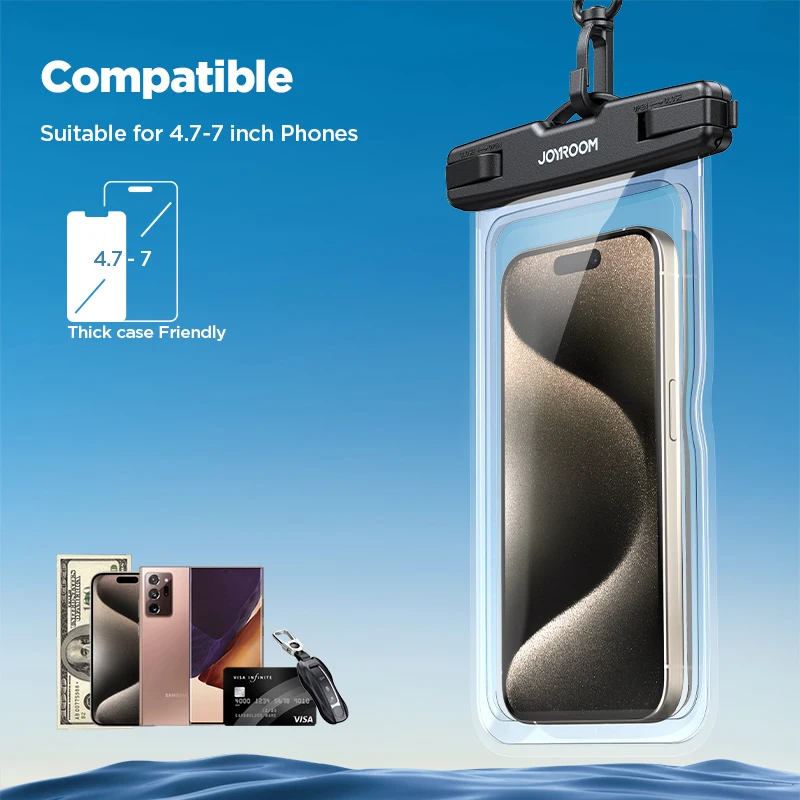🌊Compatibilidad universal: La funda impermeable para teléfono móvil JOYROOM es adecuada para teléfonos móviles de hasta 7 pulgadas, como iPhone 15 14 13 12 Pro MAX XS, Samsung Galaxy S24 S23 S22.