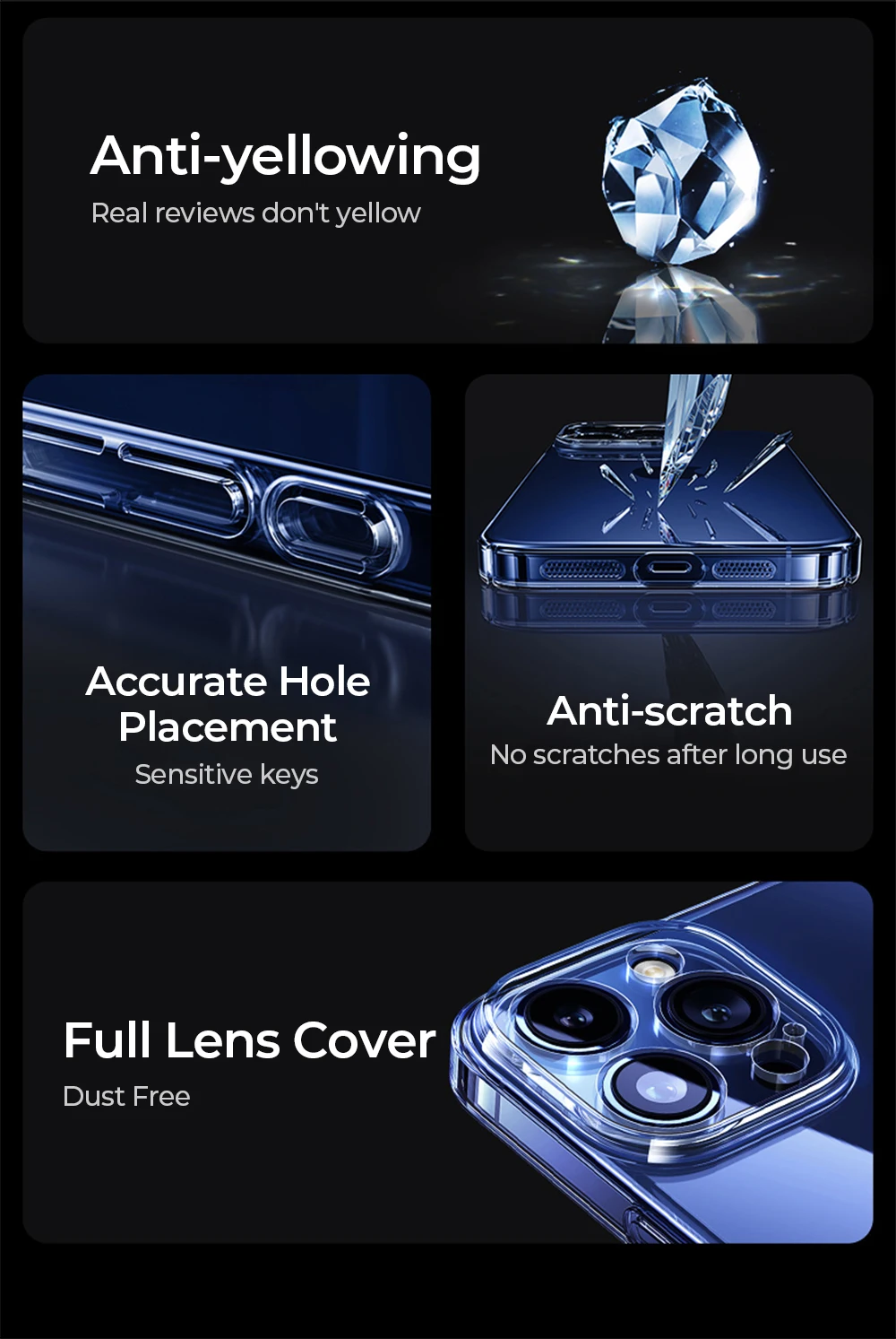 【Crystal Clear Anti-Yellowing】La funda del teléfono está hecha de material nuevo, envuelto con un delicado revestimiento antiarañazos y antiamarilleo, que no solo previene eficazmente los arañazos, las huellas dactilares y las manchas, pero también evita los daños causados por el sudor o la grasa. Buena protección sin ser voluminoso, la construcción de esquina absorbente de impactos está diseñada para disipar impactos duros.