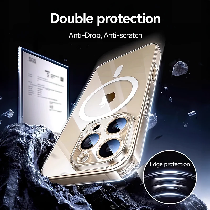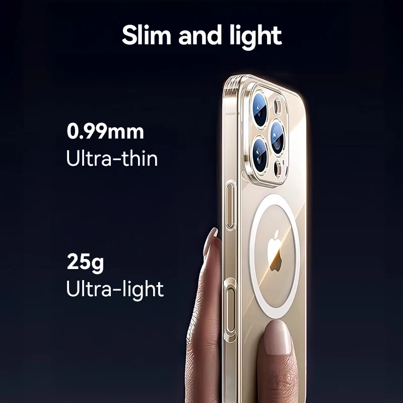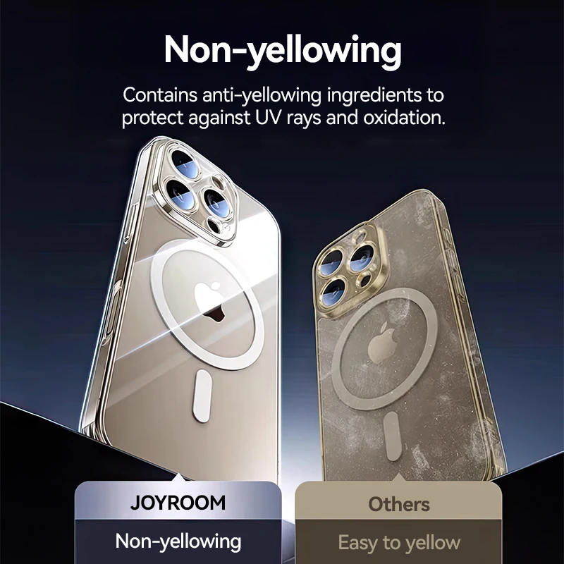 Comprar Joyroom para iPhone 16 Pro Max funda magnética transparente para iPhone 16 Pro cargador inalámbrico cubierta magnética delgada Anti amarillo