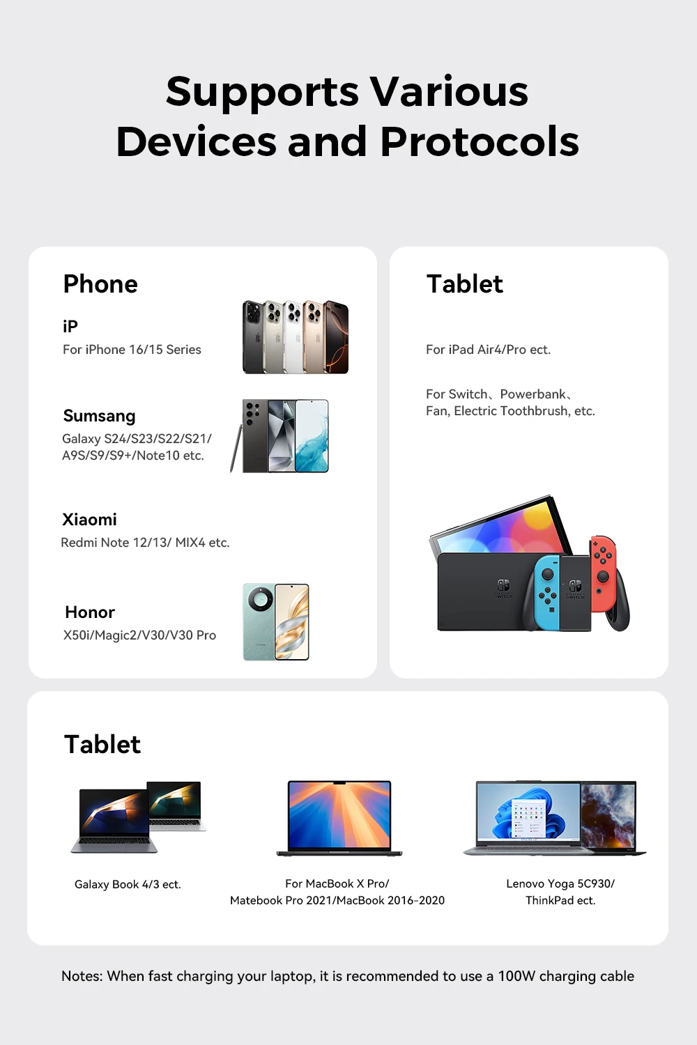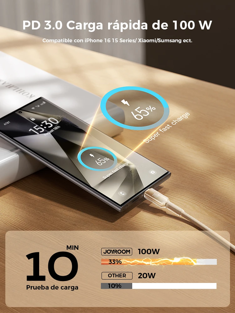 4. Compatibilidad universal: cable Joyroom de 100 W USB-C a USB-C compatible con TODOS LOS dispositivos USB-C TELÉFONO PARA TELÉFONO CÁMARA.No solo para iPhone serie 16/15, compatible con Samsung Galaxy S23 S23+ S23 Ultra S22 S22+ S22 Ultra S21/ S21+/ S21 Ultra S20/ S20+/ S20 Ultra Note 20/ Note 20 Ultra Note 10/ Note 10 Plus A90 A80 A72 A71 A70.Compatible con Pixel 2/2XL/3XL/3a/3aXL/4/4 XL/5/6a/7 (Ver descripción del producto para obtener más detalles).