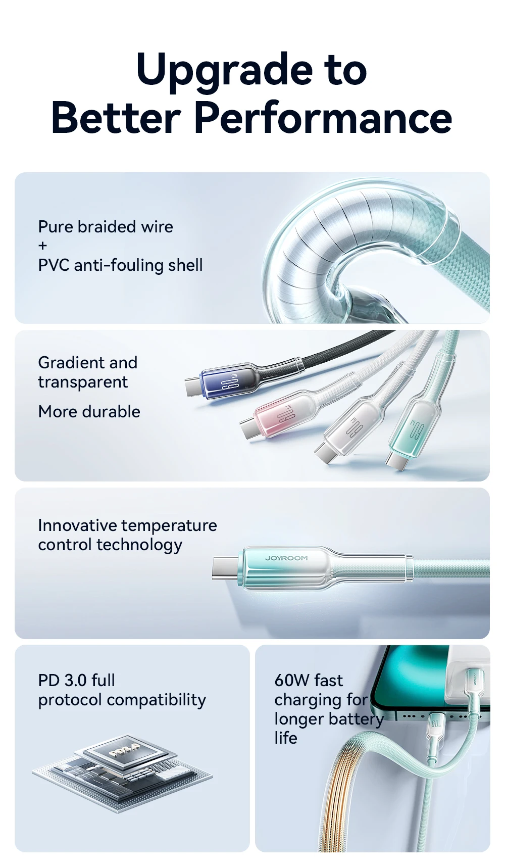 Comprar Joyroom PD 60W USB C a tipo C Cable de datos de carga rápida para iPhone 16/15 Huawei Samsung Xiaomi USB-C Cable de carga 1,2/2M