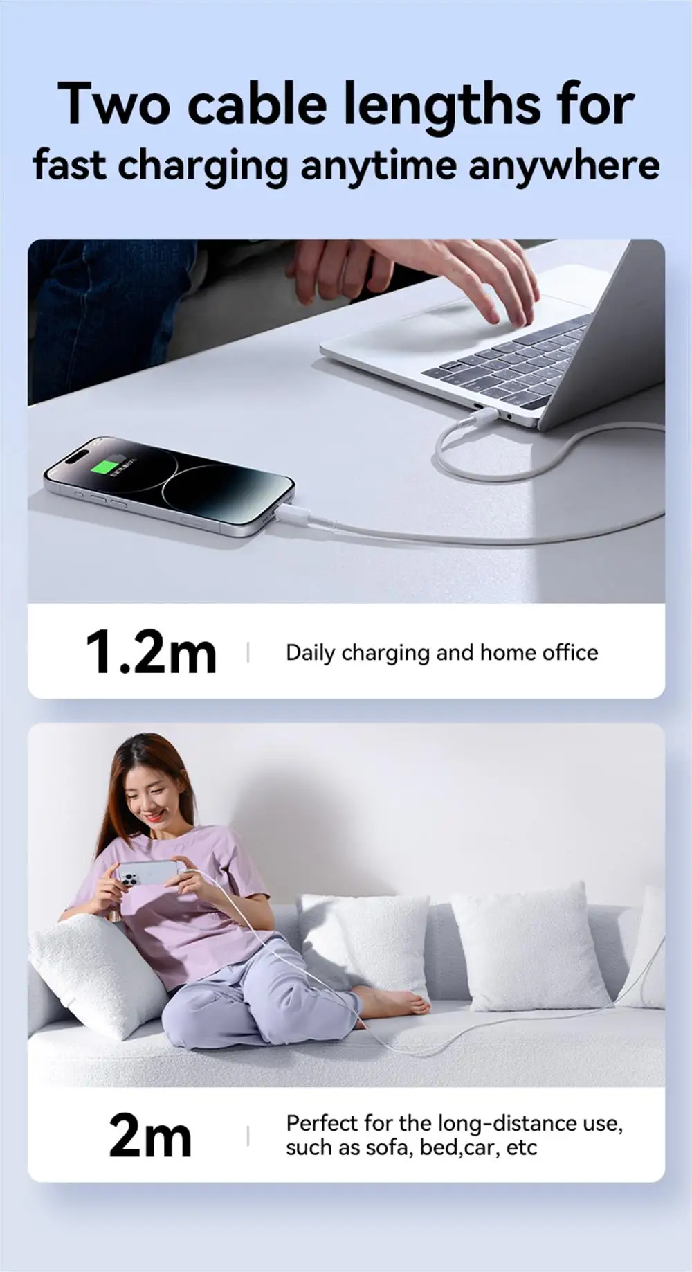 Fits for Any Scenarios1.2/2M lengths for fast charging anytime anywhere