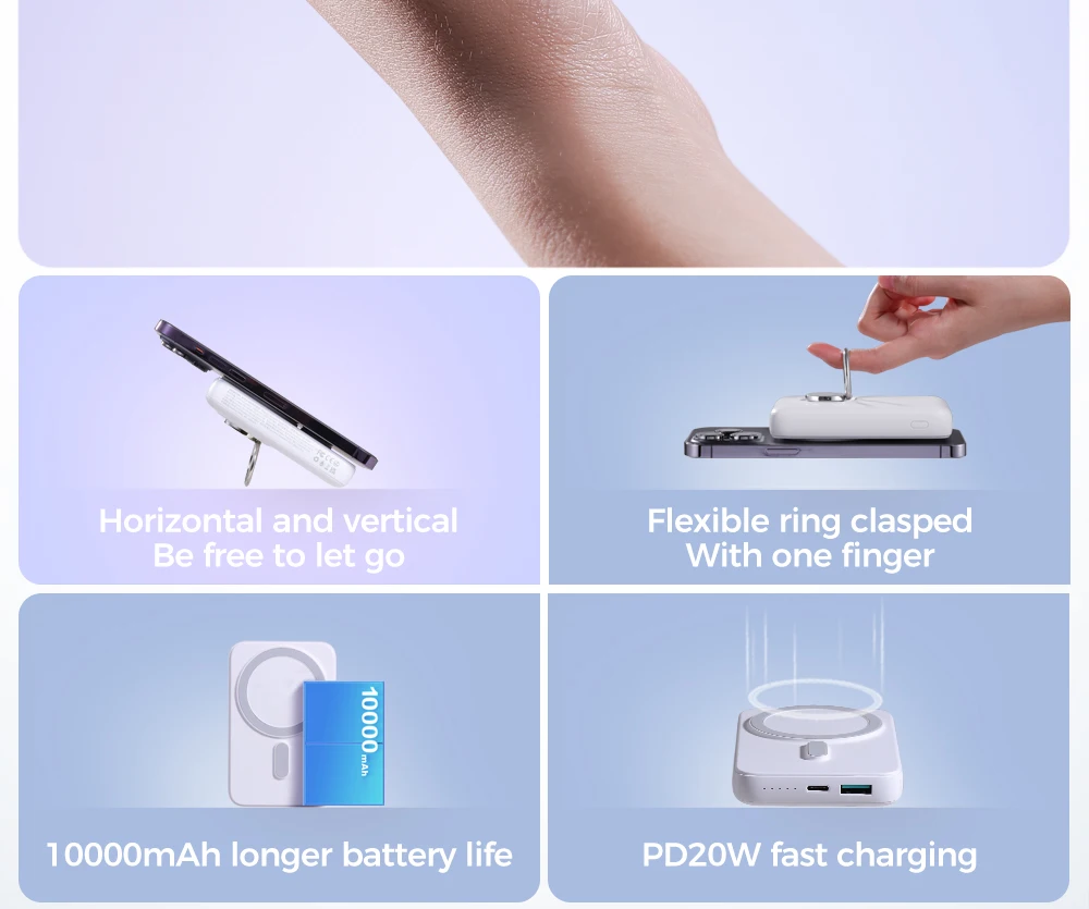 Comprar Joyroom-Powerbank magnético de 20W, batería externa de 6000mAh, inalámbrica, de carga rápida, portátil, con soporte de anillo, para iPhone