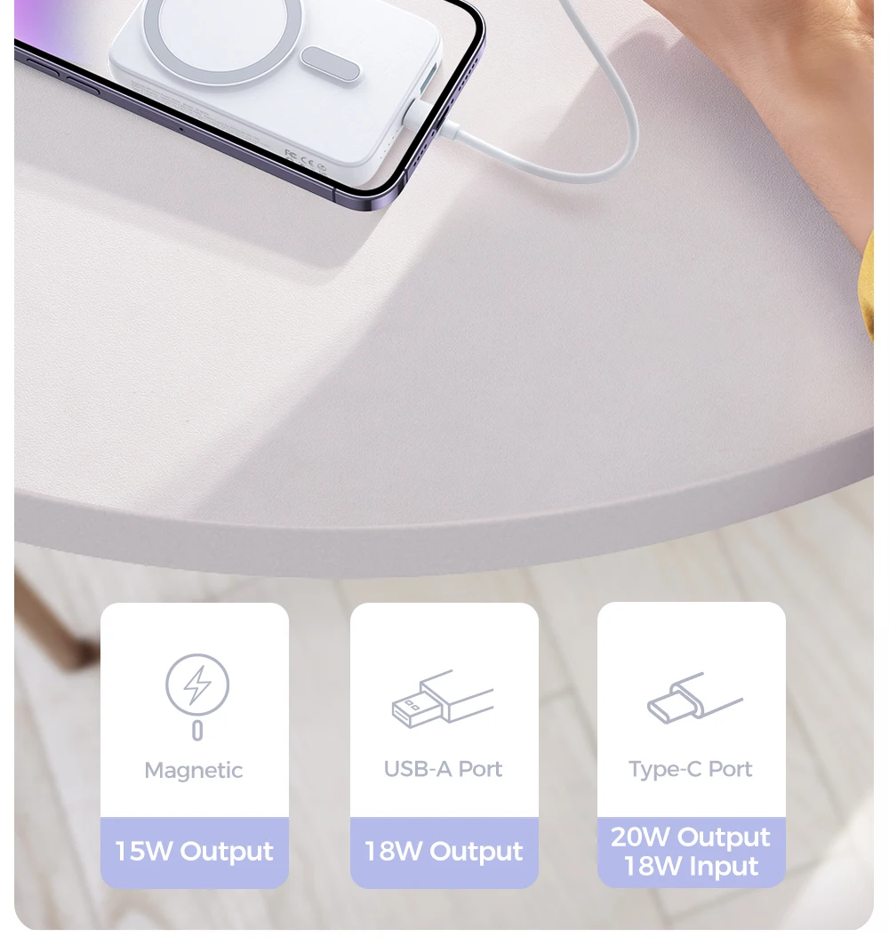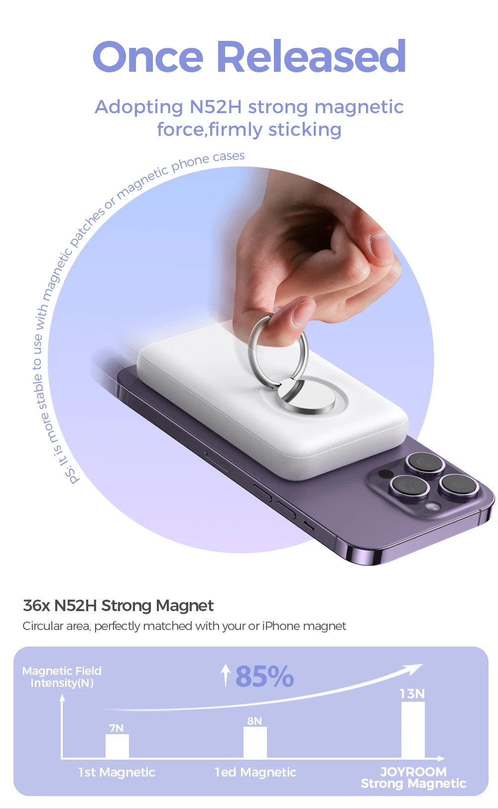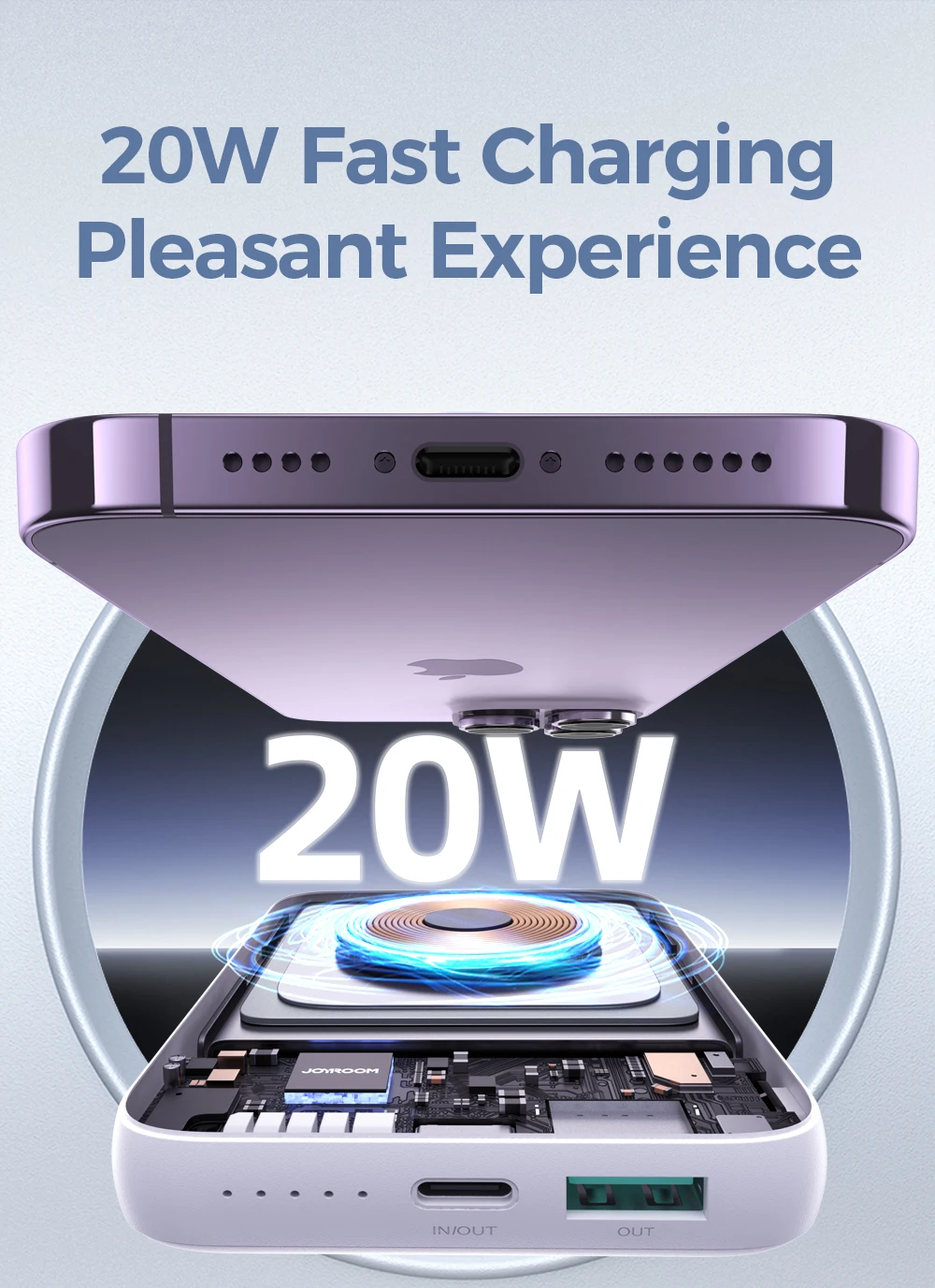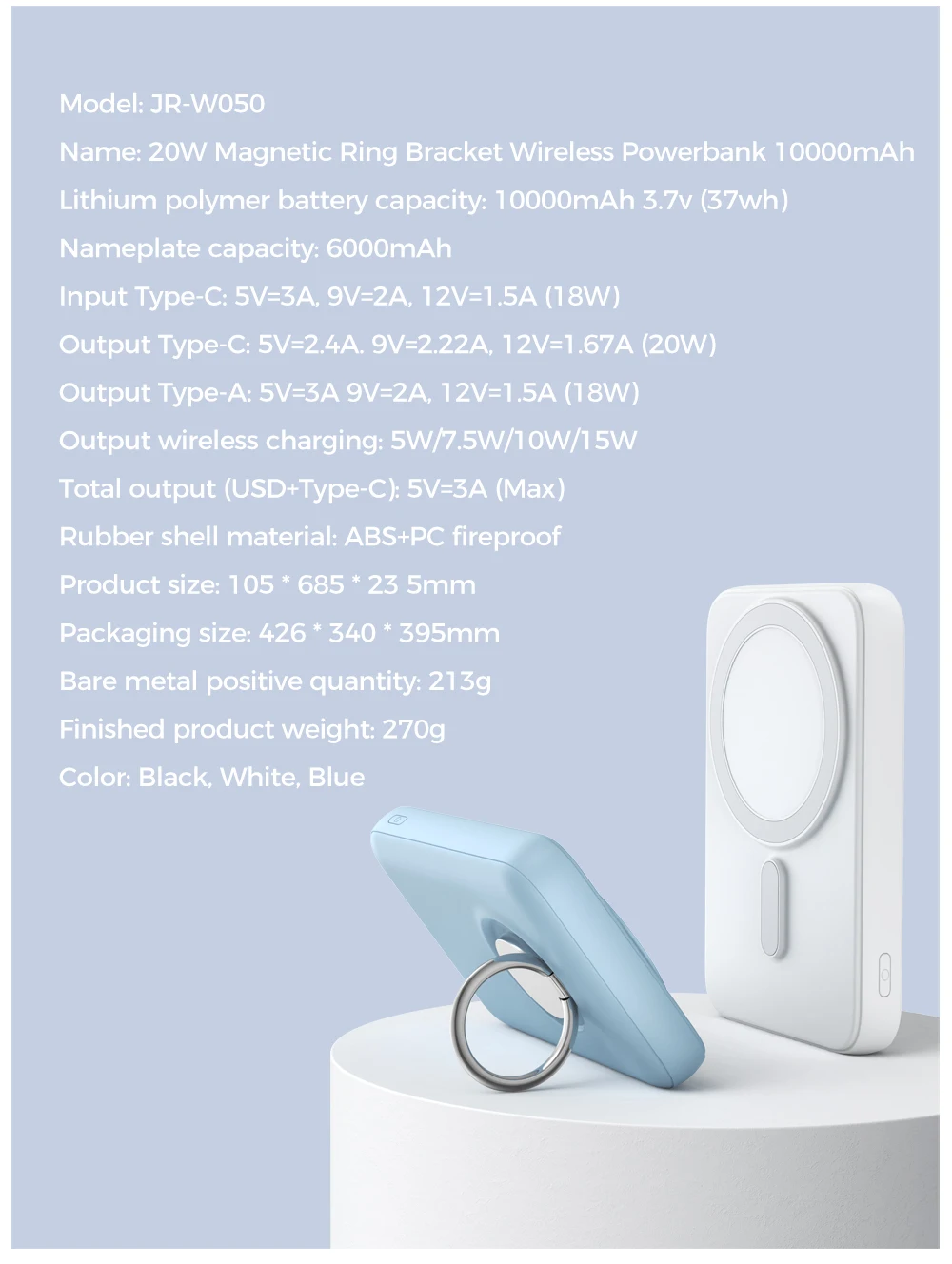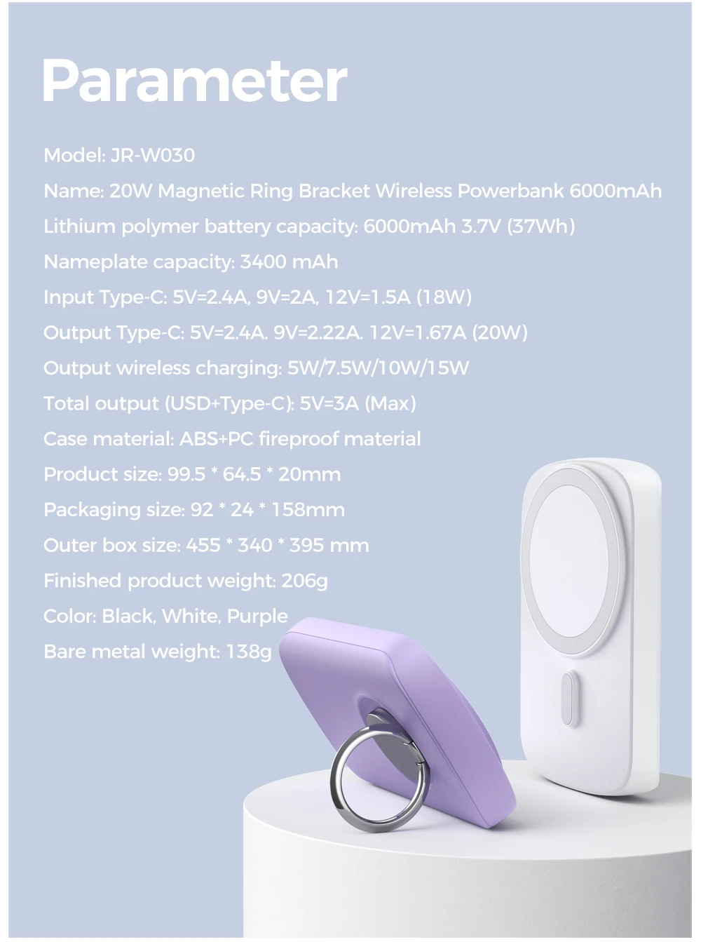 Joyroom 20W Powerbank magnético 6000mAh inalámbrico de carga rápida banco de energía portátil con soporte de anillo batería externa para iPhone