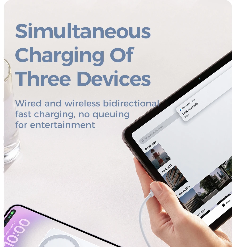 3.Función dos en uno con cable + inalámbrica, Admite tres dispositivos para cargar al mismo tiempo