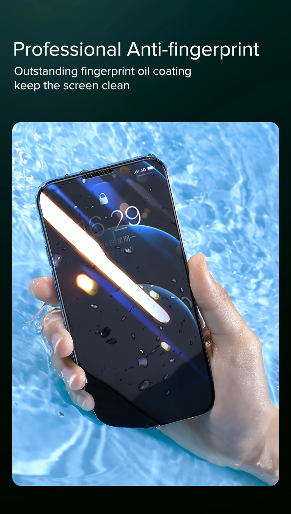 2. 【Antiaceite y antiincrustante】-- La superficie de la película protectora está tratada con un recubrimiento OLEOFÓBICO de plasma, que es muy suave, evita eficazmente el sudor y la grasa de las huellas dactilares. Hecho de vidrio templado de dureza de grado de diamante ostentoso ultrafino de 0,33mm, que mantiene el 99.99% de sensibilidad de respuesta y tacto, lo que le brinda una experiencia táctil perfecta.
