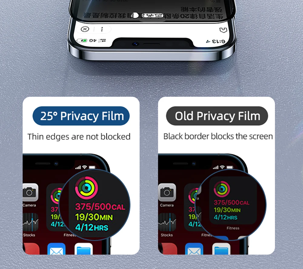 Otra película de privacidad antigua: el borde negro bloquea la pantalla.