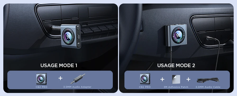 2023 actualización Bluetooth 5,3 AUX adaptador de coche [micrófonos duales y sonido de graves profundos HiFi] [Cancelación de ruido y pantalla de duración de la batería] receptor Bluetooth JOYROOM para música de coche/llamadas manos libres, duración de la batería 26H