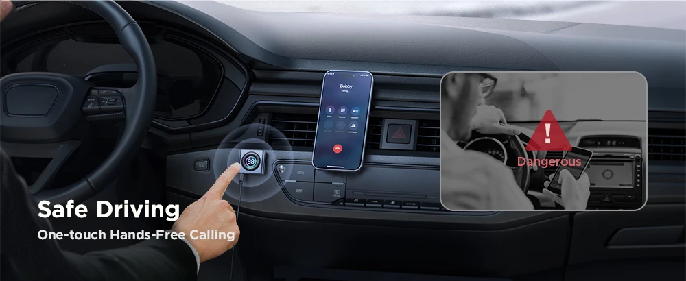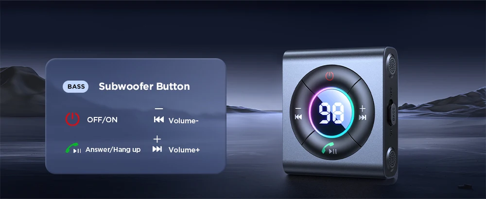 【Botón multifunción y diseño de luz LED】El botón independiente diseñado por el receptor Bluetooth 5,3 admite subir y bajar una tecla canción/subir/bajar volumen/responder/colgar/devolver la llamada. Facilidad de uso, sin distracciones y conducción más segura. Las luces LED facilitan la búsqueda de botones cuando cae la noche.