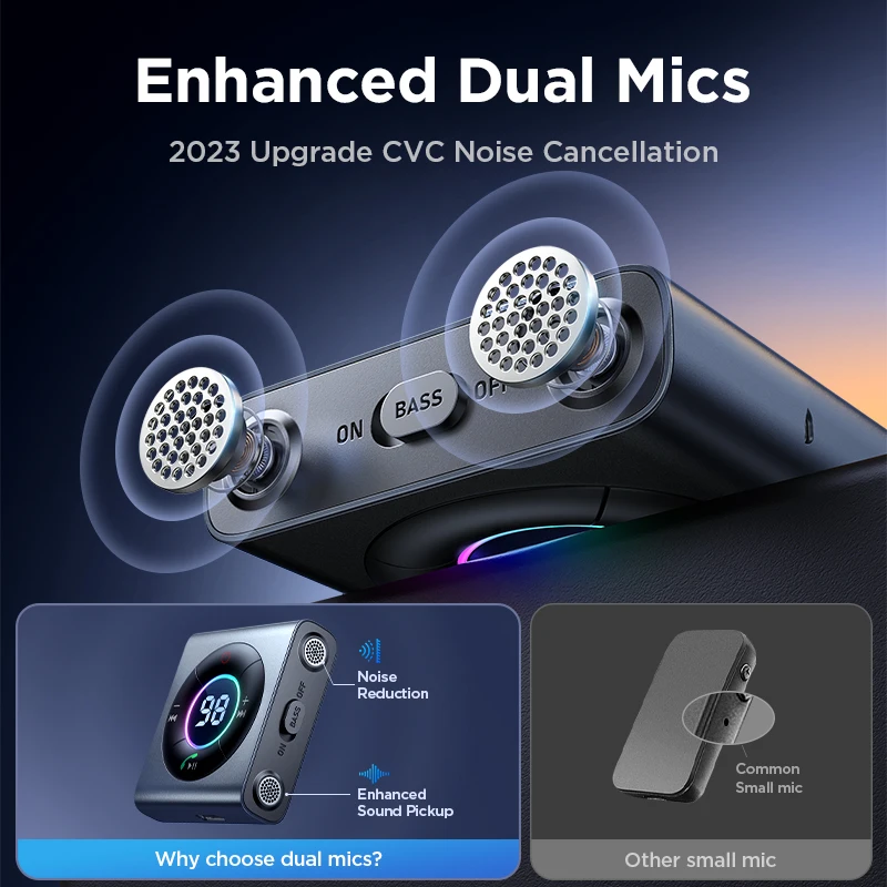 Comprar Joyroom-receptor de música para coche, adaptador con Bluetooth 5,3, AUX, doble micrófono, HiFi, sonido de graves profundos, cancelación de ruido, manos libres