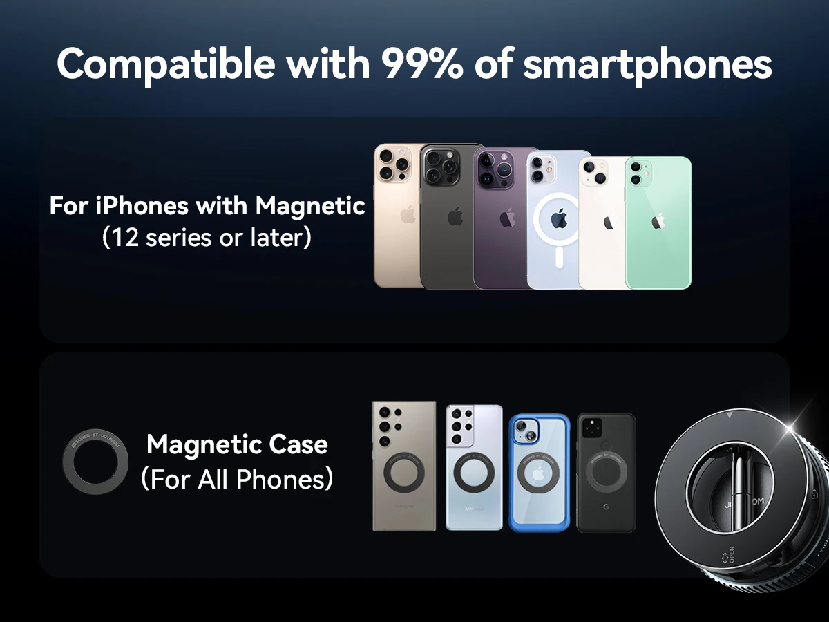 5.【Universal Compatibility Across Devices】Designed for modern smartphones, this car phone mount accommodates devices from 4.7" to 7.2". The extra-wide magnetic surface ensures secure grip regardless of phone case thickness (up to 5mm). Enhanced magnetic alignment works with most charging-compatible cases. Whether you use magnetic , or bare phones(Includes a magnetic adhesive ring), this phone holders for your car delivers reliable performance across brands.