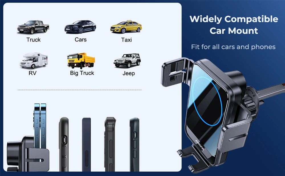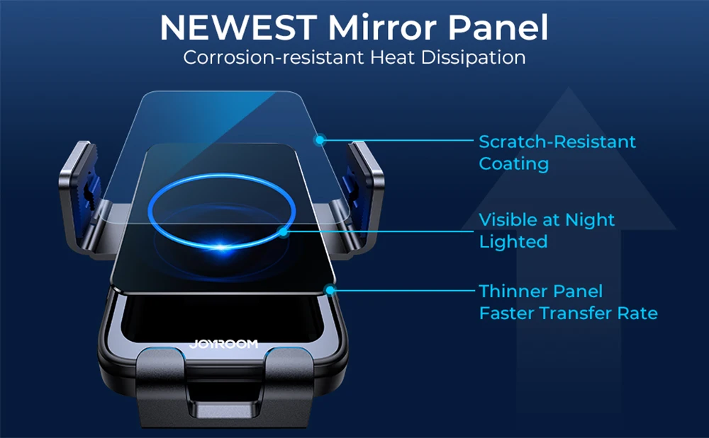4【Ángulo flexible y fácil de usar】Con un soporte retráctil y plegable y cabeza giratoria de 360 °, nunca bloquea la vista de conducción, puede ajustarlo a una posición que lo hace cómodo. El cargador inalámbrico para coche Joyroom admite la carga a través de carcasas de teléfono de hasta 5mm de grosor. Tenga en cuenta que las carcasas hechas de metal, los accesorios externos como imanes, tarjetas de crédito, agarres y soportes interferirán con la carga.