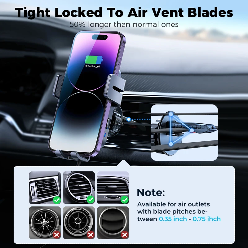 Todavía puede tocar los botones de liberación de este cargador de montaje de coche 2-3 veces para sujetar o liberar su teléfono, no más preocupaciones Si olvidas sacar tu teléfono del soporte cuando el coche está apagado.