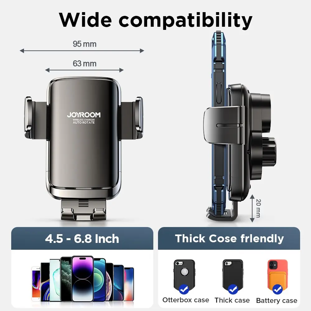 Comprar Joyroom-Soporte de teléfono para coche, cargador inalámbrico, giratorio, estable, para salpicadero de ventilación de aire, portátil