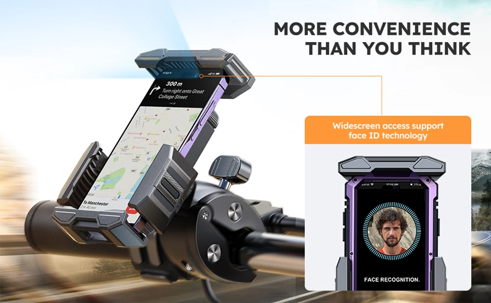 6.[Funda gruesa amigable]-No importa lo grueso que sea el teléfono, se sujeta firmemente. Este soporte para teléfono de motocicleta funciona con todos los teléfonos de 4,7-7 pulgadas y combinaciones de fundas gruesas como iPhone 14/14 Pro Max/13/13 Pro Max/12/12 Pro Max/11/XS/SE/8/7 Plus, galaxy S23/S22/S21/S20/Note 20/Note 10 , LG, Google Pixel, Motorola, etc.