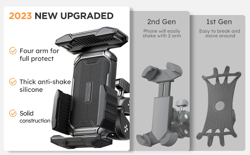 JOYROOM Soporte de Teléfono de Motocicleta, Soporte de Teléfono de Bicicleta para Bicicleta-Abrazadera de Seguridad Más Nueva 2023-Soporte de Teléfono de Manillar de Operación con Una Mano para ATV Scooter para iPhone, Samsung, Más Teléfono Celular de 4,7 "- 7"