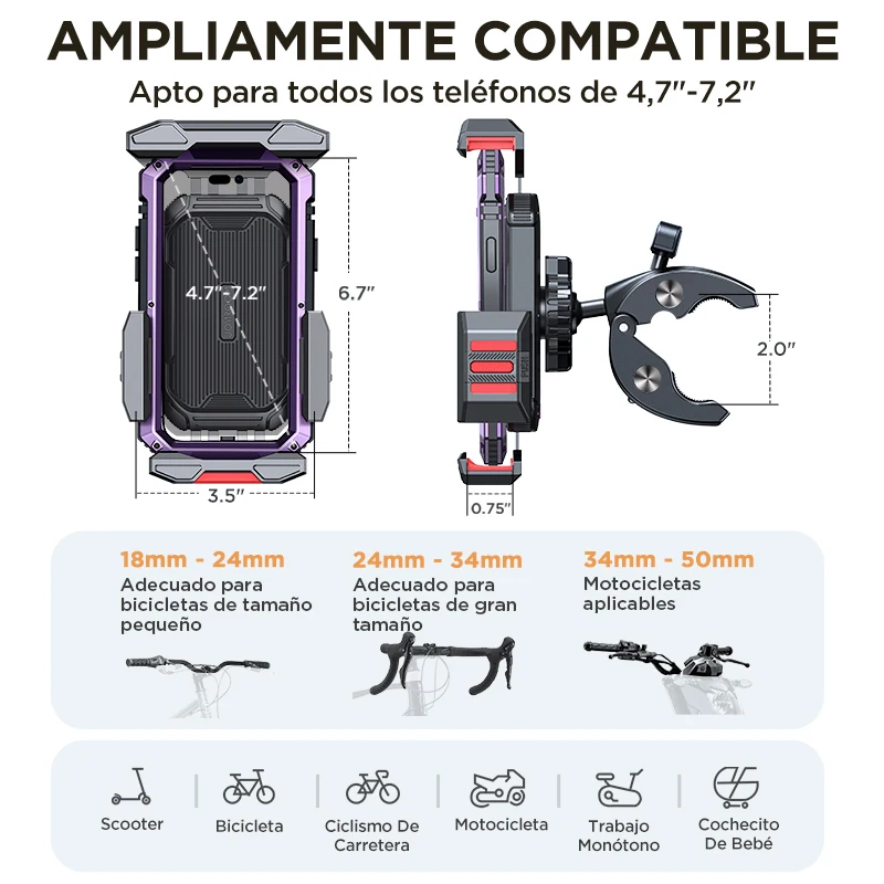 6.[Funda gruesa amigable]-No importa lo grueso que sea el teléfono, se sujeta firmemente. Este soporte para teléfono de motocicleta funciona con todos los teléfonos de 4,7-7,2 pulgadas y combinaciones de fundas gruesas como para iPhone 14/14 Pro Max/13/13 Pro Max/12/12 Pro Max/11/XS/SE/8/7 Plus, galaxy S23/S22/S21/S20/Note 20/Note 10 , LG, Google Pixel, Motorola, etc.