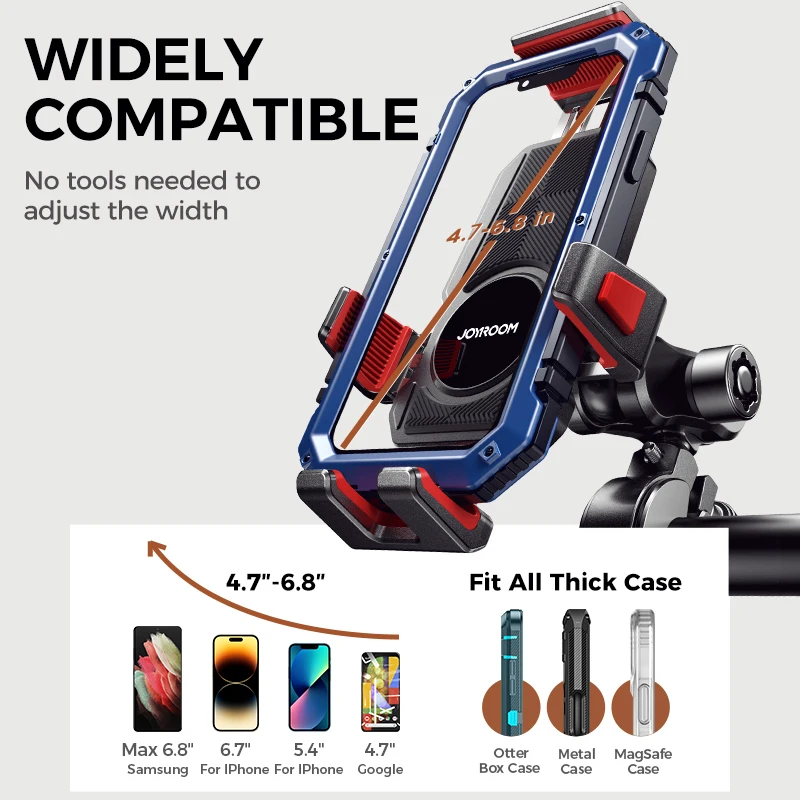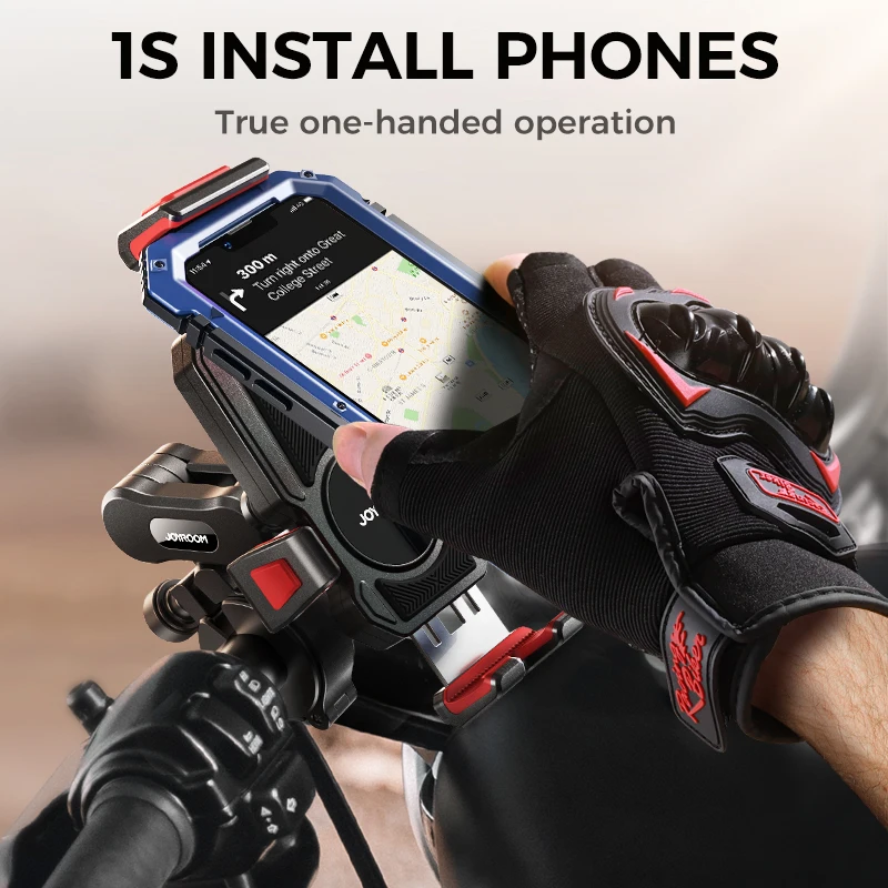 3.[Brazo de sujeción de liberación 1S]Soporte para teléfono de bicicleta JOYROOM con brazo de abrazadera de engranaje mecánico, 1 segundo puede liberar el brazo de abrazadera, adecuado para cualquier tamaño de teléfono celular.Y no es necesario utilizar herramientas para ajustar el ancho del brazo de sujeción.