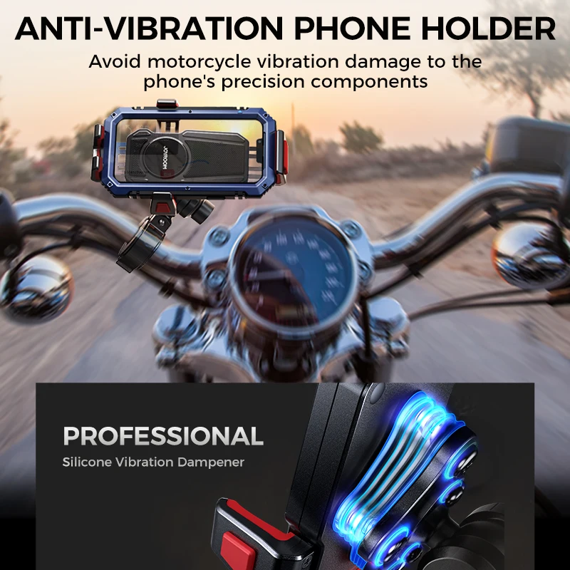 1.[Equipado con amortiguadores de vibración]Este soporte para teléfono para motocicleta está equipado con amortiguadores para reducir eficazmente la vibración generada cuando el motor está funcionando a alta velocidad, protegiendo la cámara del teléfono y otros componentes de precisión contra daños.