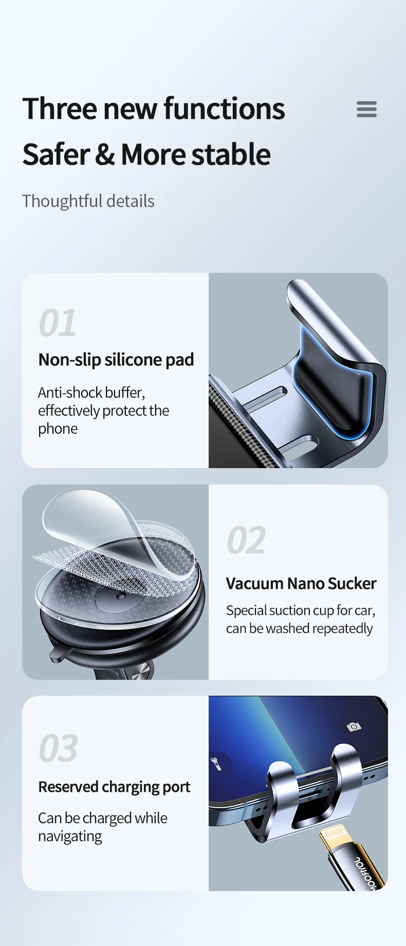 5. Fuerza súper pegajosa: ventosa de nano-gel, succión fuerte y estable.