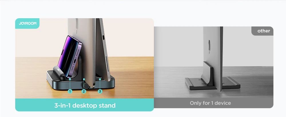 1. Diseño 3 en 1: Soporte de almacenamiento multifuncional, compatible con ordenadores portátiles, tabletas, teléfonos móviles, etc.