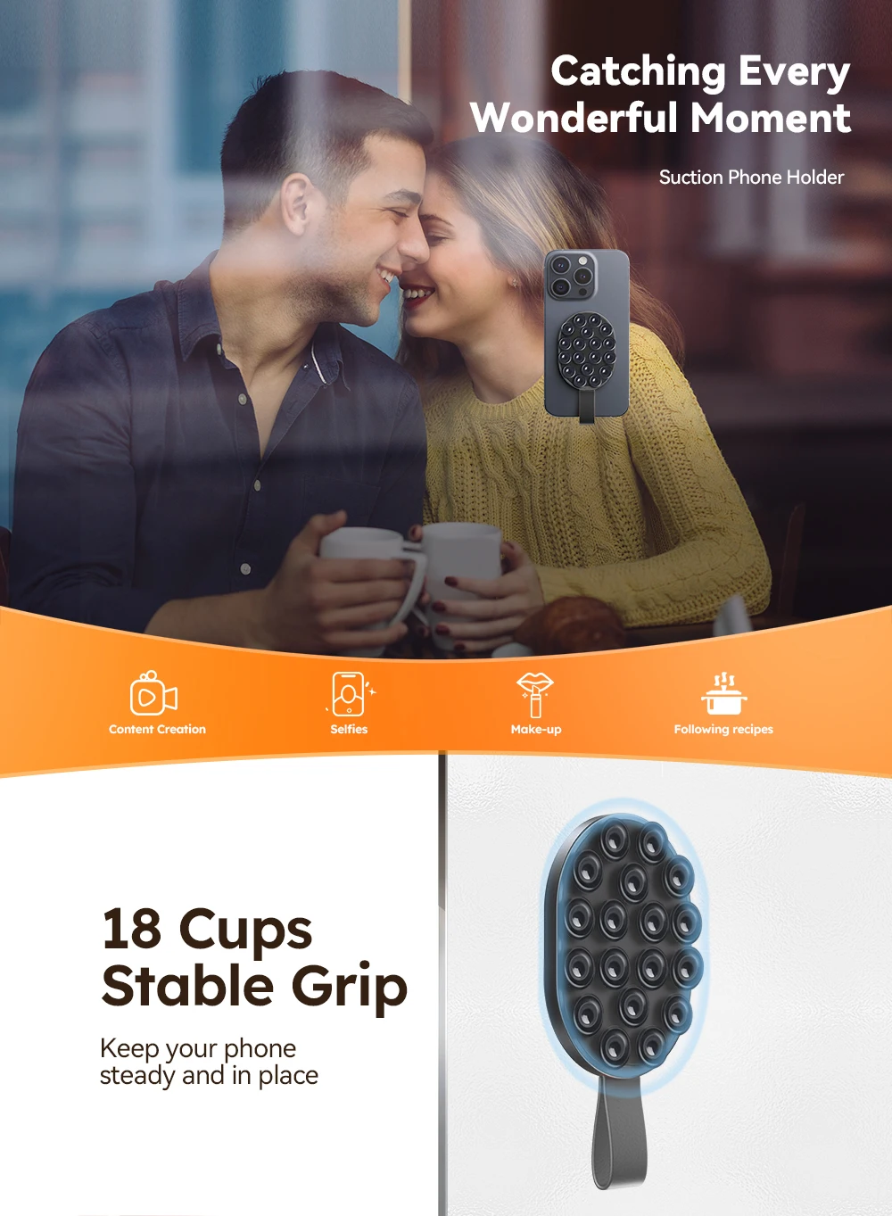 1. La versión mejorada tiene más ventosas para fijar el teléfono de manera firme y estable a una superficie lisa;