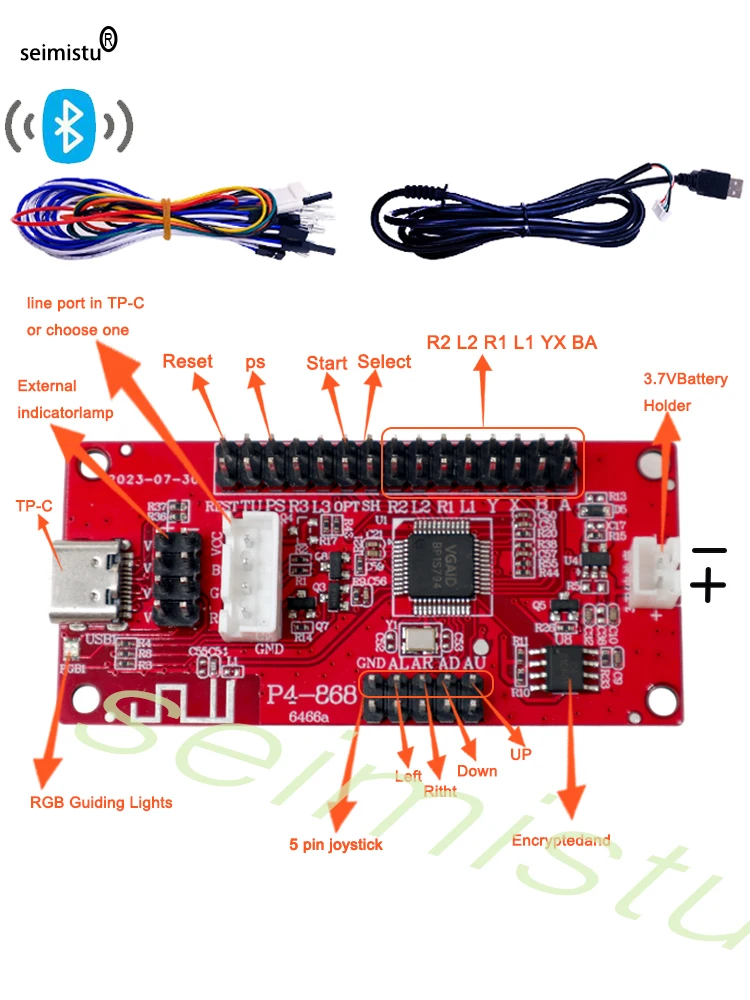 Carga: el mango está enchufado al cable de carga y conectado a la computadora host o cargado bajo DC5.0V. El LED de color RGB se mostrará naranja al cargar cuando el mango esté apagado.
