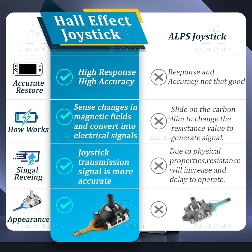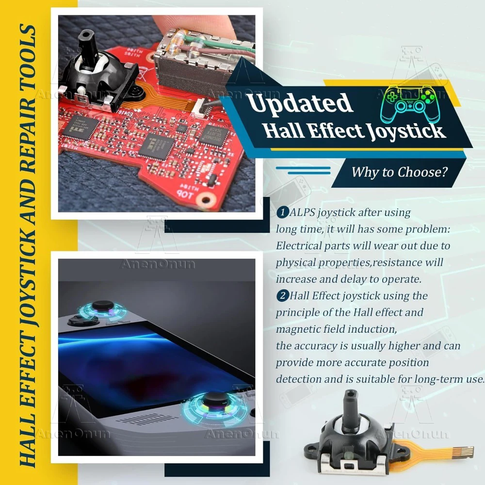 🔥🔥🔥【Alta calidad】- El joystick analógico 3D de efecto Hall para el mango está hecho de metal de alta calidad + plástico ABS, que es más preciso de usar y tiene una vida útil más larga.