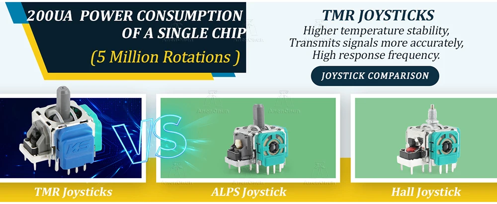 🔥🔥🔥【Ventajas del joystick electromagnético TMR】- En comparación con los joysticks de película de carbono tradicionales, los joysticks TMR tienen las características de alta vida útil y sin deriva de los joysticks Hall y al mismo tiempo tienen la alta precisión y el bajo consumo de energía de los joysticks de película de carbono.Tiene mayor sensibilidad y resolución, y la precisión de la retroalimentación puede alcanzar el nivel milimétrico, lo que resuelve fundamentalmente el problema de deriva del joystick.