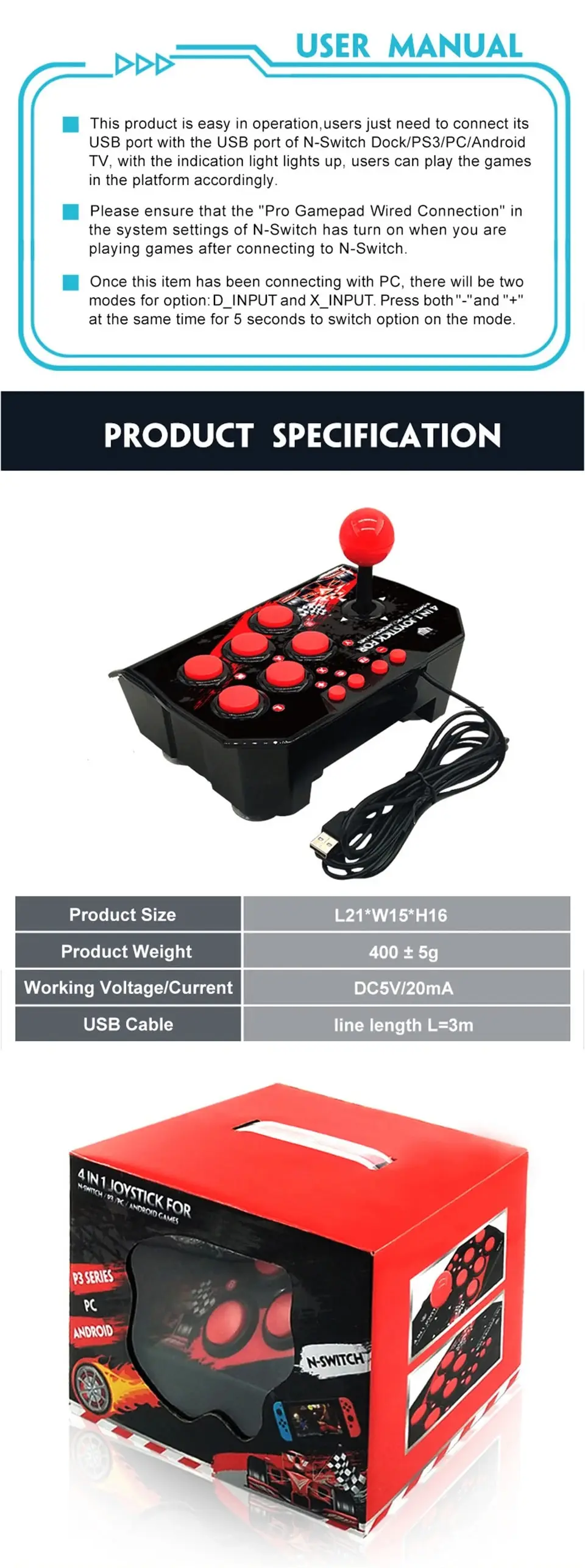 Este producto es fácil de usar, los usuarios solo necesitan conectar su puerto USB con el puerto USB de N-Switch Dock/PS3/PC/Android