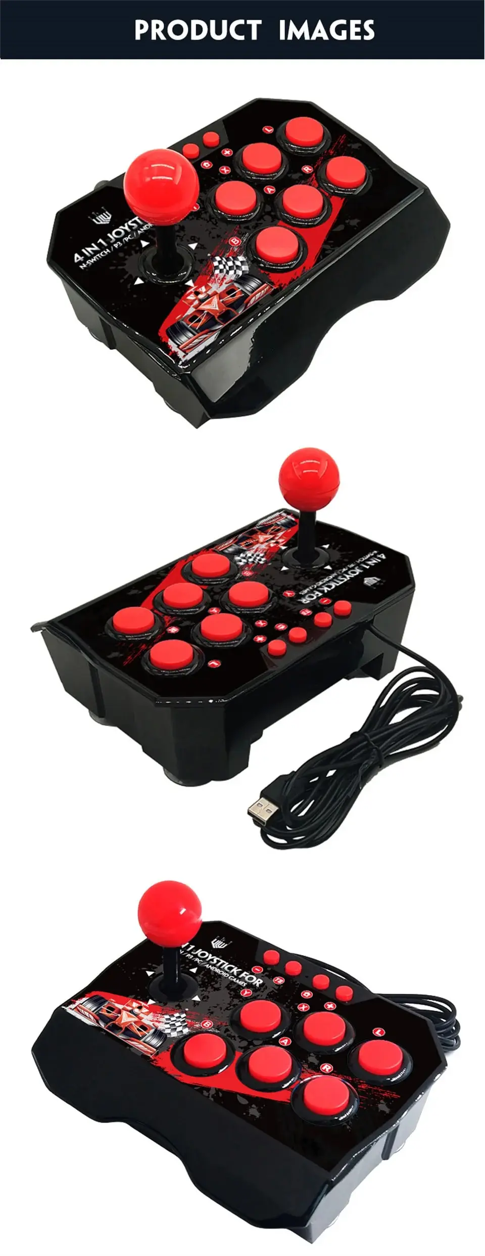 Comprar Joystick de juego 4 en 1 con Cable USB de 3M, consola de juegos TURBO, estación de Arcade basculante para Nintendo Switch, Android, TV, PS3, PC