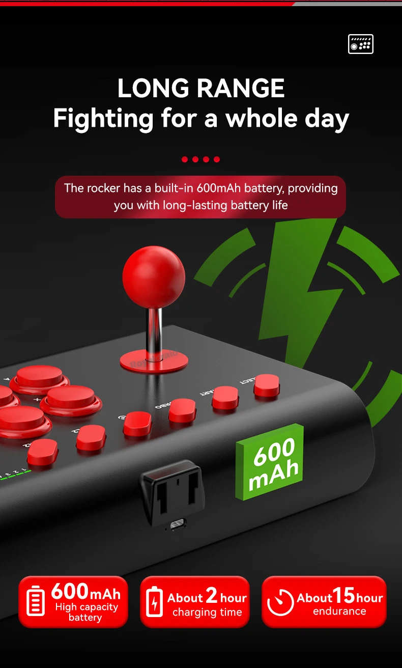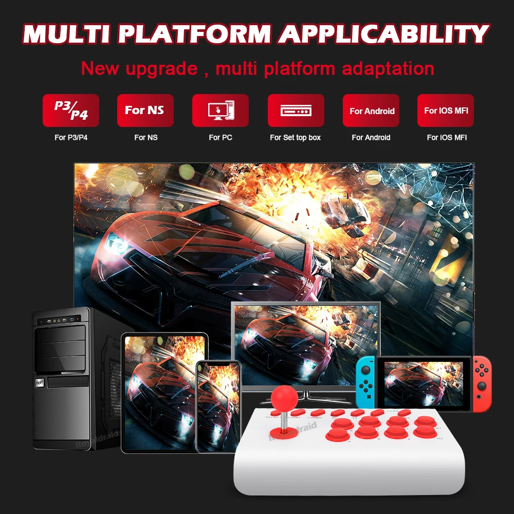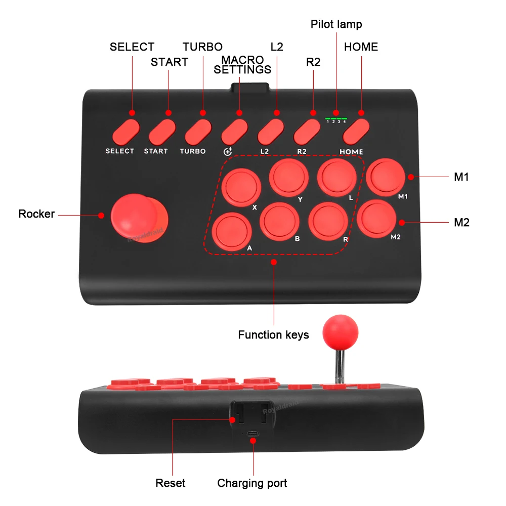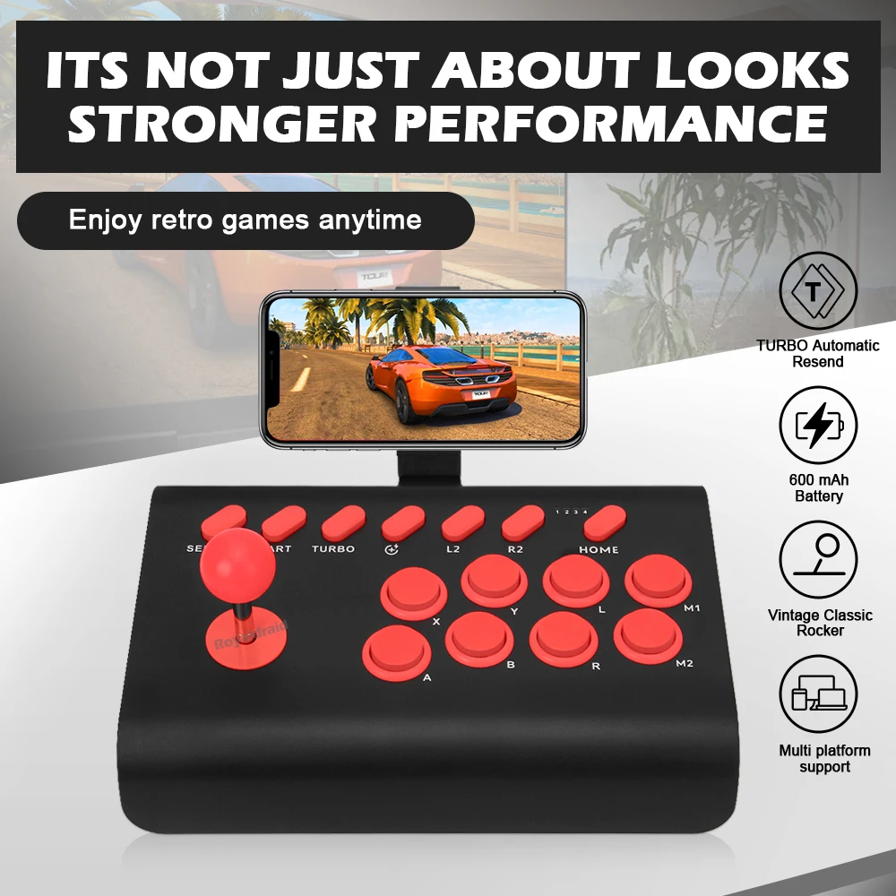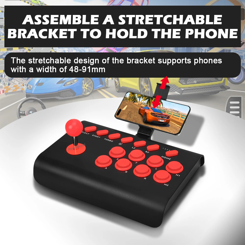 Joystick de juego de lucha Y02 con soporte estirable Consola de juegos Función Macro/TURBO de conexión de 3 modos para PS4/Xbox One/Switch OLEDNuevo control de juegos Arcade inalámbricos Y02 de 8 teclas para PS4/PS3/Switch/Switch controlador de consola OLED PC/TV/Android/MFI teléfonos Joystick Gamepad accesoDescripción:1.Joystick Arcade Retro Y02, nostálgico para los clásicos.2.Admite múltiples plataformas, adecuadas para PS4/Switch&OLED/Android/teléfonos Apple/computadora/TV/cajas de juegos.3.Admite disparo continuo automático de una tecla TURBO, ataque continuo.4.Batería incorporada de gran capacidad de 600 mAh, resistencia duradera.5.Admite tres modos de conexión con cable, inalámbrico compatible con BT y inalámbrico de 2,4G.6.Joystick de juego de rango completo, guía clara, posicionamiento preciso.7.Botones de lucha profesionales, sensibles y precisos.8.Diseño arcade convencional, botones estandarizados, diseño ergonómico, funciones claras y concisas.9.Admite configuraciones macro, combinaciones de una tecla y ultrarrápido.10.Rendimiento de alta gama, chip de juego de lucha, permite un inicio rápido del juego, sin demoras, gráficos claros y una experiencia de juego mejorada.11.Compatible con una gran cantidad de juegos, no compatible con juegos con vista de perspectiva.12.Se puede conectar a decodificadores, computadoras y pantallas grandes para una experiencia de juego inmersiva.13.Equipado con un soporte extensible, admite teléfonos con un ancho de 48-91 mm.Especificaciones:Nombre: Joystick inalámbrico con soporteModelo: BSP-Y02 8 teclasColor: 4 coloresMaterial: ABSTipo de interfaz: TIPO-CMétodo de conexión: compatible con BTTamaño del producto: 283 mm * 198 mm * 116 mmMétodo de vibración: sin vibraciónBatería: batería incorporada de 600 mAhTiempo de carga: alrededor de 2 horasDuración de la batería: aproximadamente 15 horasPlataformas compatibles: para PC/MFI/Androd/PS3/PS4/Switch, decodificadoresCaracterísticas: Compatibilidad multiplataforma, para disparo continuo con una sola tecla TURBO, configuraciones macro, compatible con una gran cantidad de juegos, con soporte para teléfono, batería incorporada de gran capacidad.Contenido del paquete:1 joystick inalámbrico1x soporte para teléfono1x Cable de carga1x Manual de usuario1 paquete al por menorNota:1.Debido a la diferencia de luz y pantalla, el color del artículo puede ser ligeramente diferente al de las imágenes.2.Permita una ligera desviación en los datos de medición y asegúrese de que no le importe antes de realizar el pedido.3. Si no se aceptan disputas como regalo, ya que son gratuitas, no se reciben el pago, esperamos comprensión, gracias.
