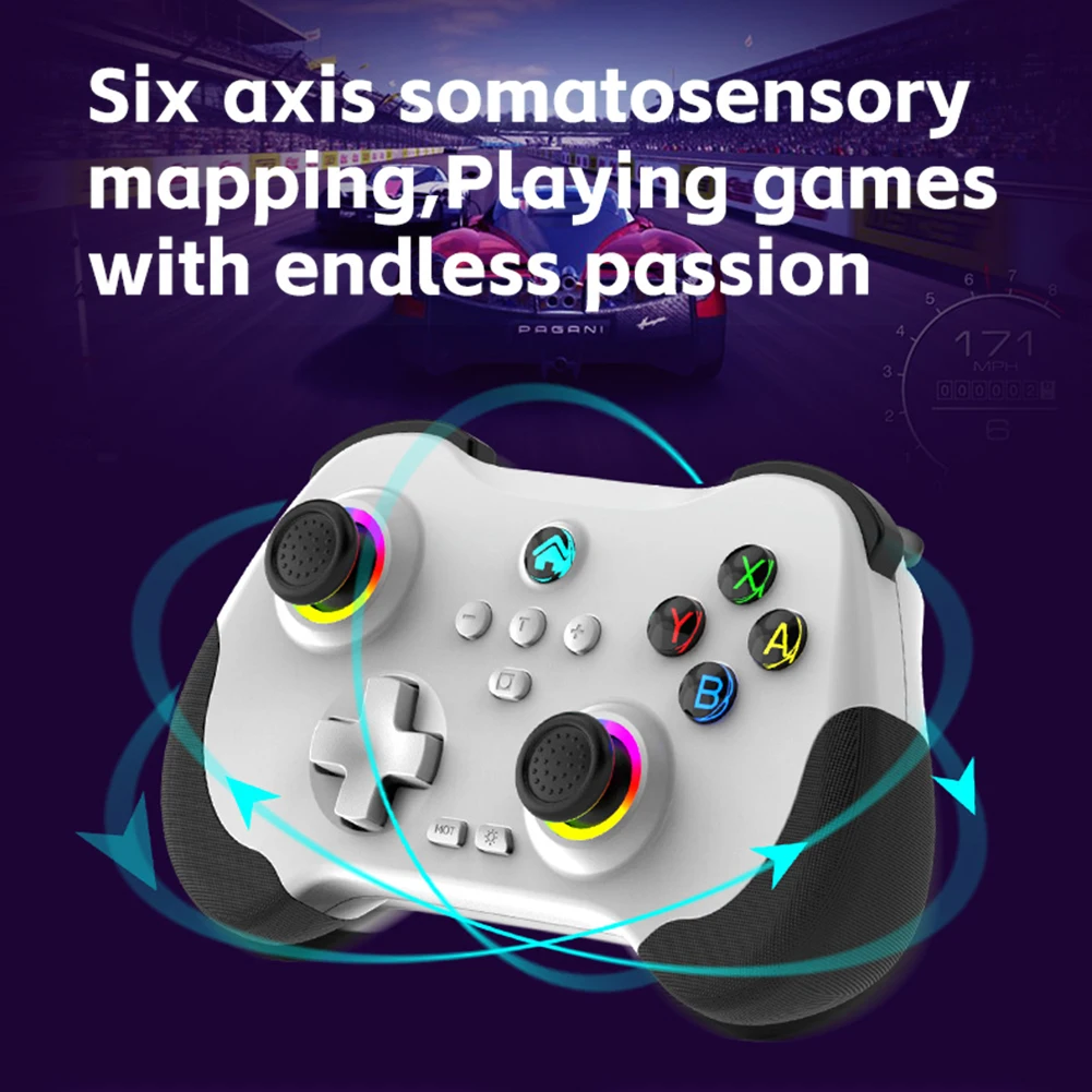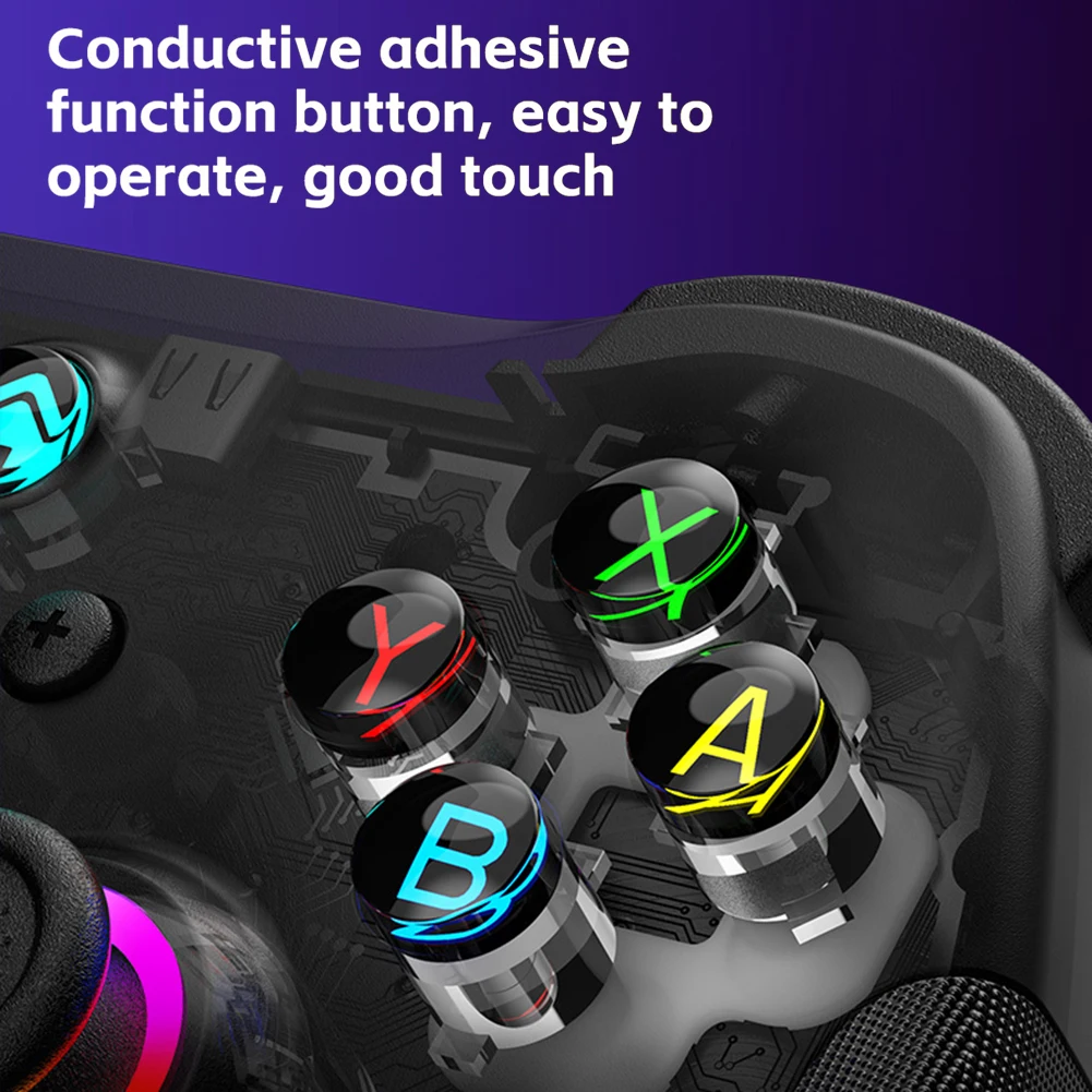 Controlador inalámbrico RGB, controlador de juego de vibración dual, compatible con Bluetooth, Sensor de movimiento de 6 ejes, compatible con Turbo programable con Joystick Hall 3D para Switch Steam Deck PS3 PS4