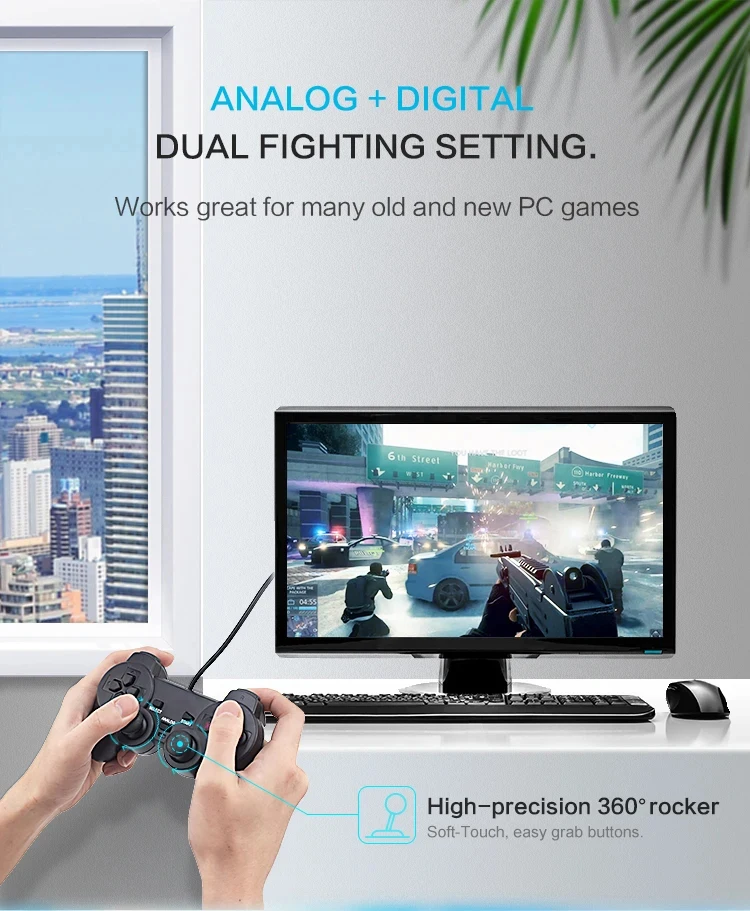 Te regala un gamepad USB, solo necesitas una computadora para satisfacer tus necesidades, aunque el tiempo ha sido largo, ¡pero aún así es cálido!¡Te lleva de regreso a la infancia y siente la sangre de nuestro año! Este controlador es adecuado para muchos juegos de PC nuevos y antiguos.360 de alta precisión° Rocker para un posicionamiento preciso.