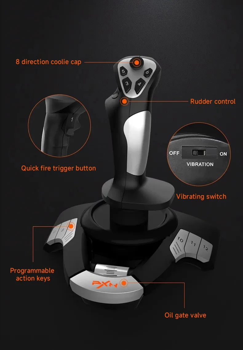 • Tipo de Joystick :Como un joystick, proporciona una respuesta de control precisa y dinámica, mejorando tu experiencia de juego de vuelo.
