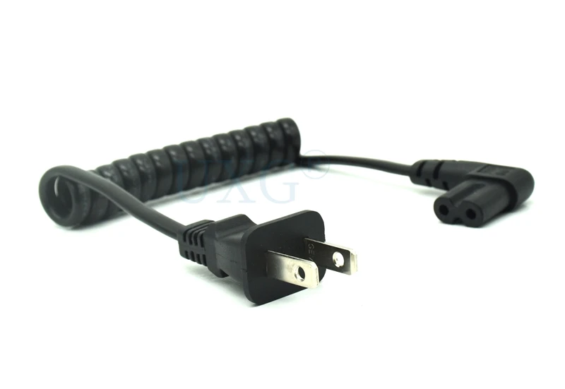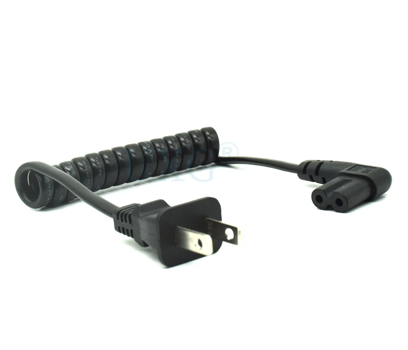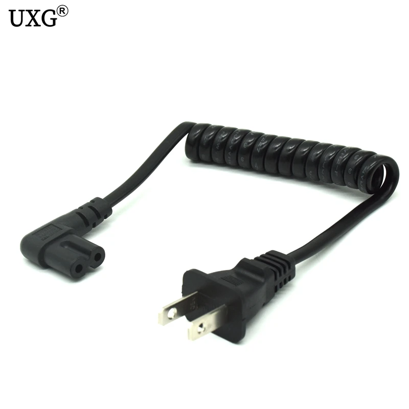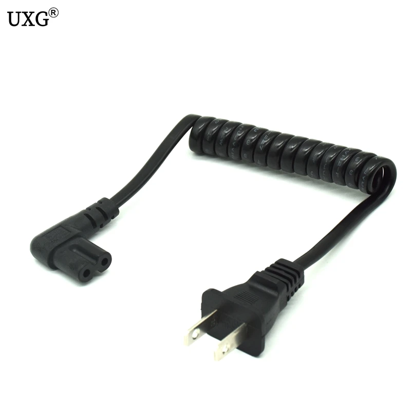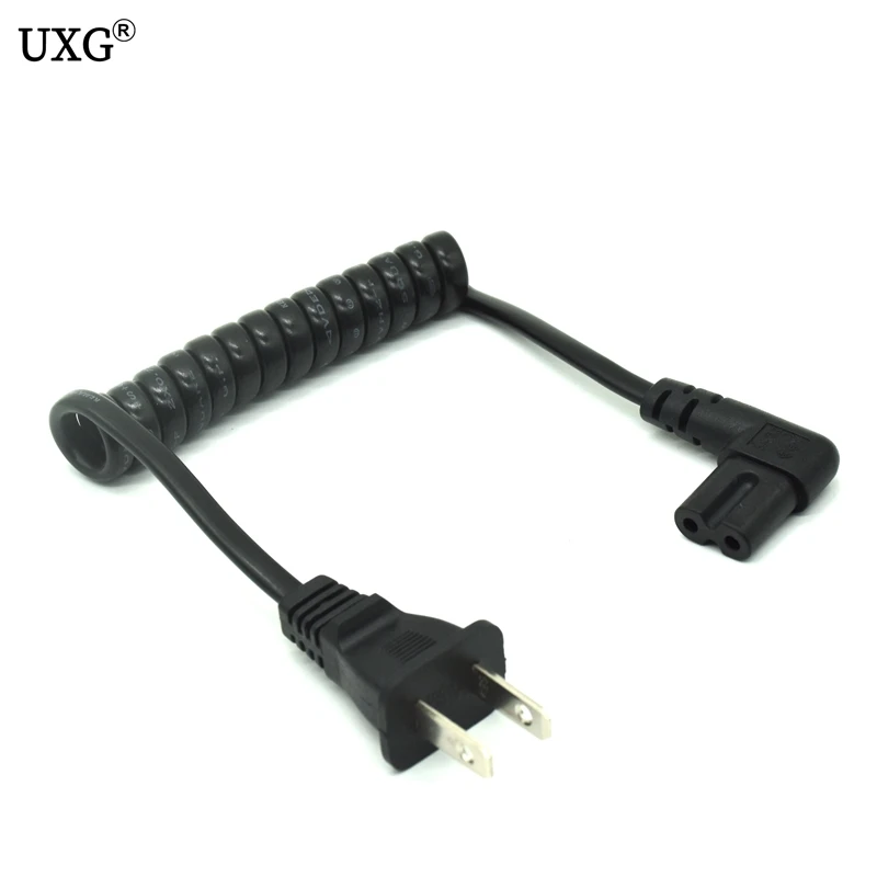 Comprar JP US NEMA 1-15P enchufe de 2 pines a IEC320 C7 AC cable portátil corto de 2 clavijas C7 en ángulo 20cm PU cable de alimentación de resorte retráctil 60cm